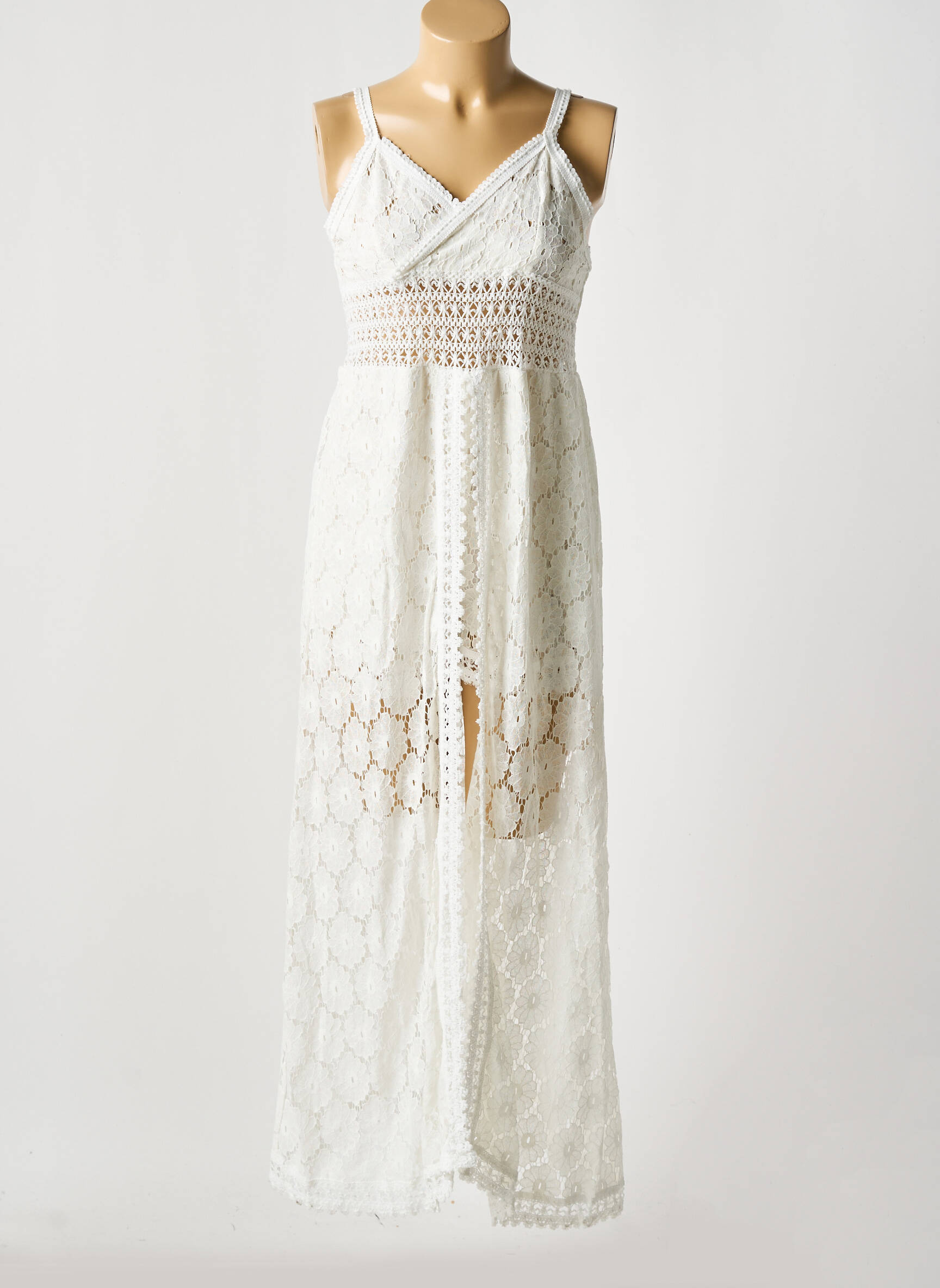Rochie Lungă Loriane Alb Bretele Subțiri