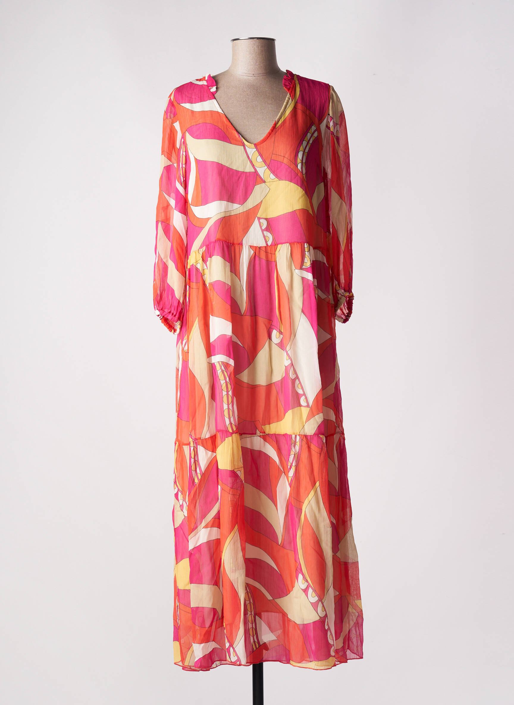Rochie Lungă Maria Bellentani Roz Mâneci 3/4