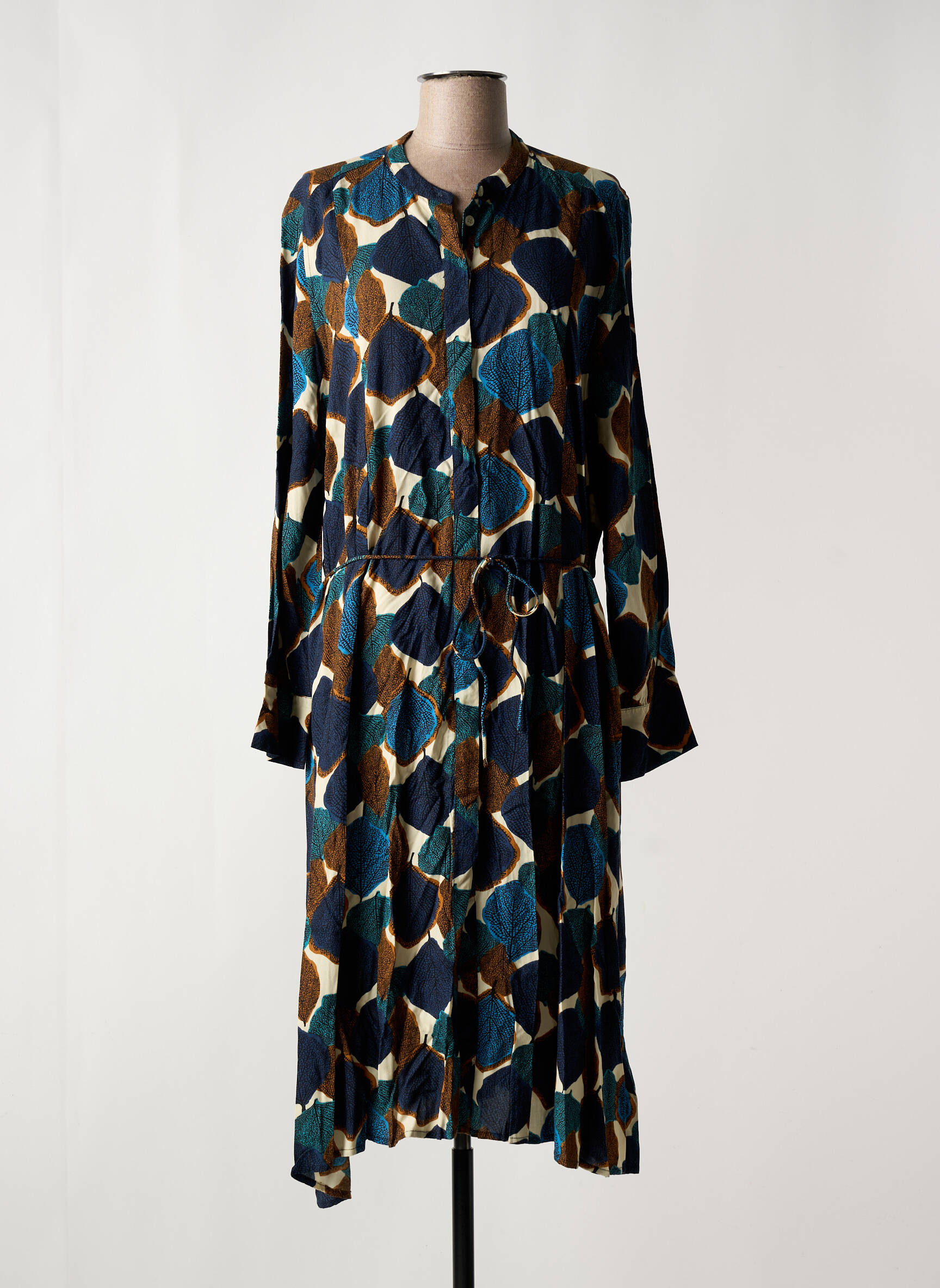 Rochie Lungă Masai Albastru Mâneci Lungi