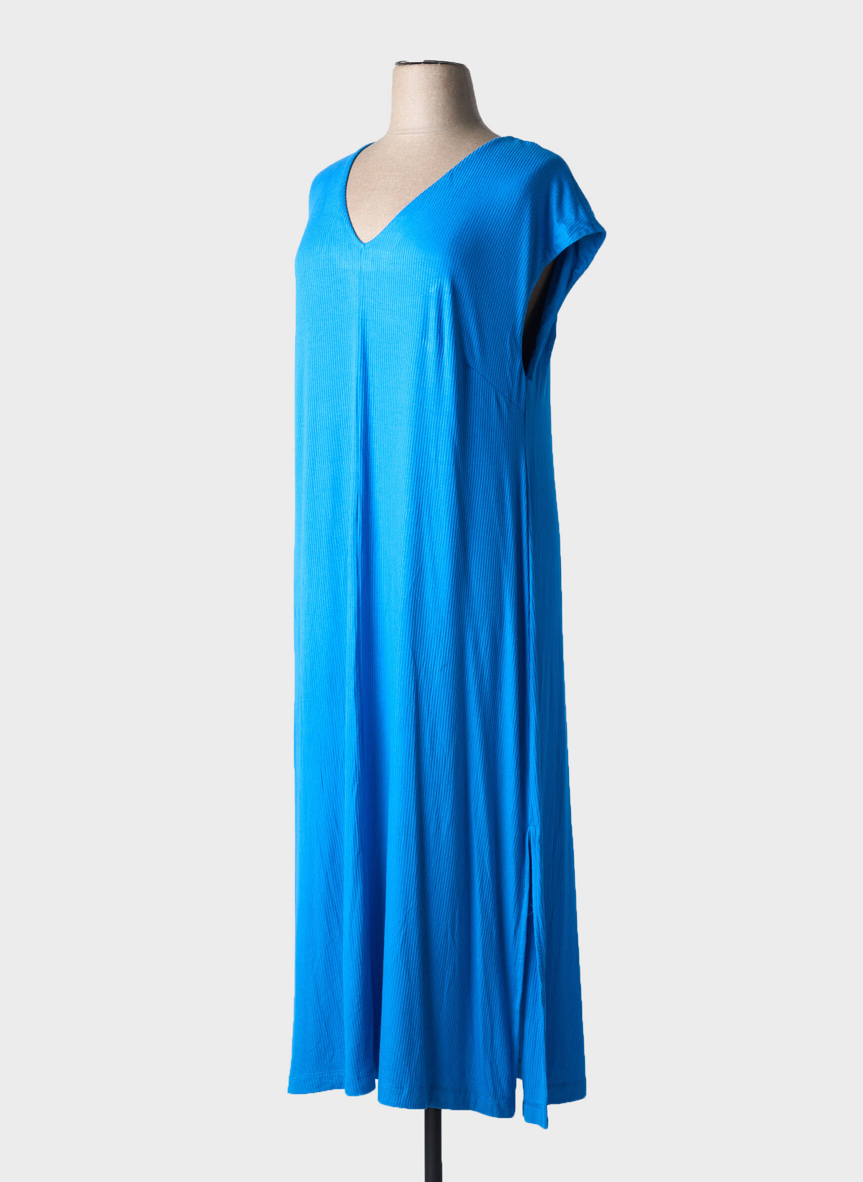 Rochie Lungă Mat. Albastru Mâneci Scurte