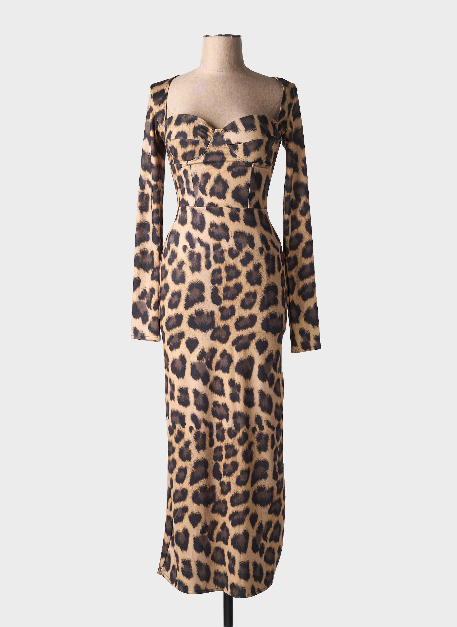 Rochie Lungă Maxmila Bej Mâneci Lungi