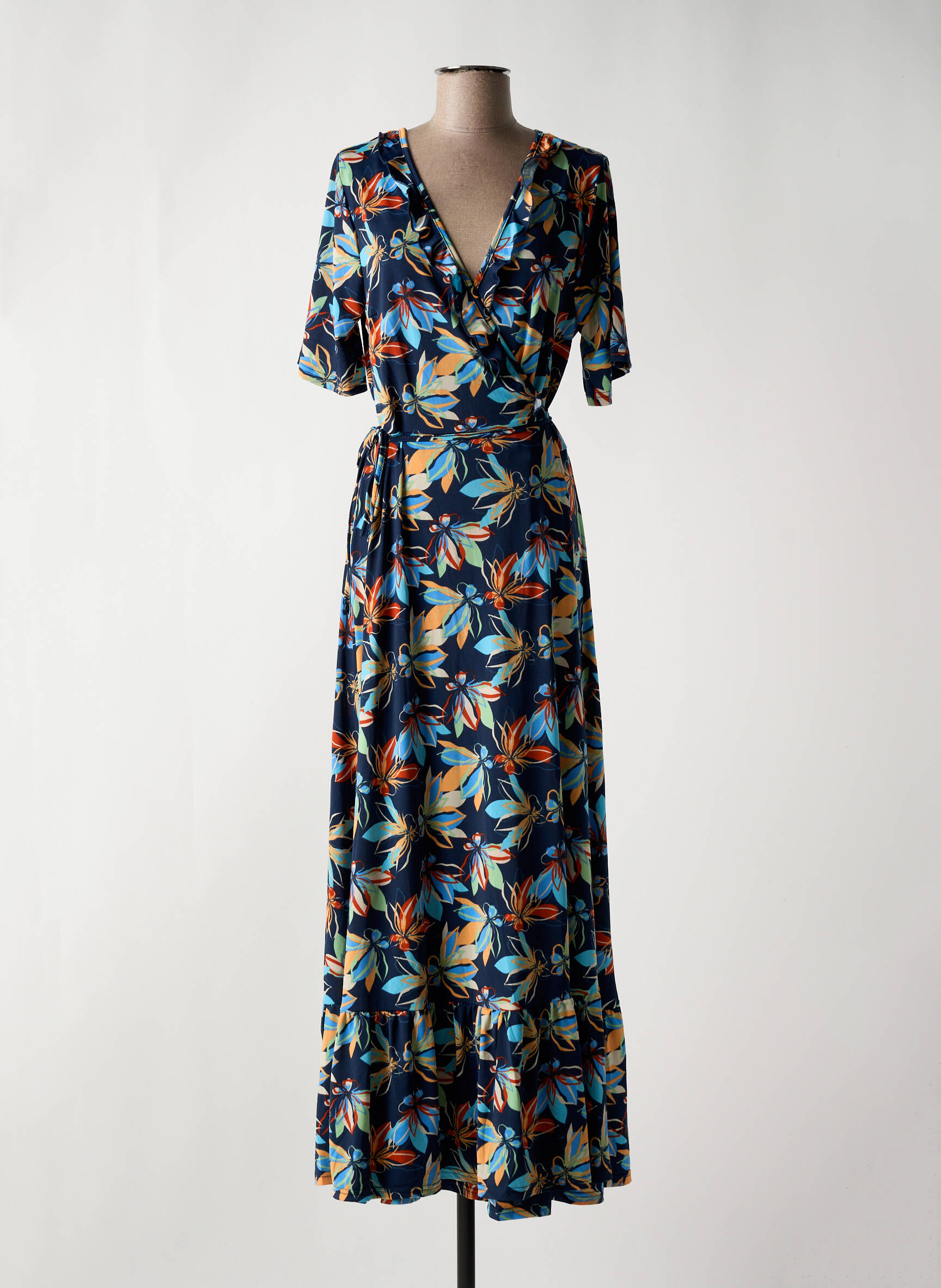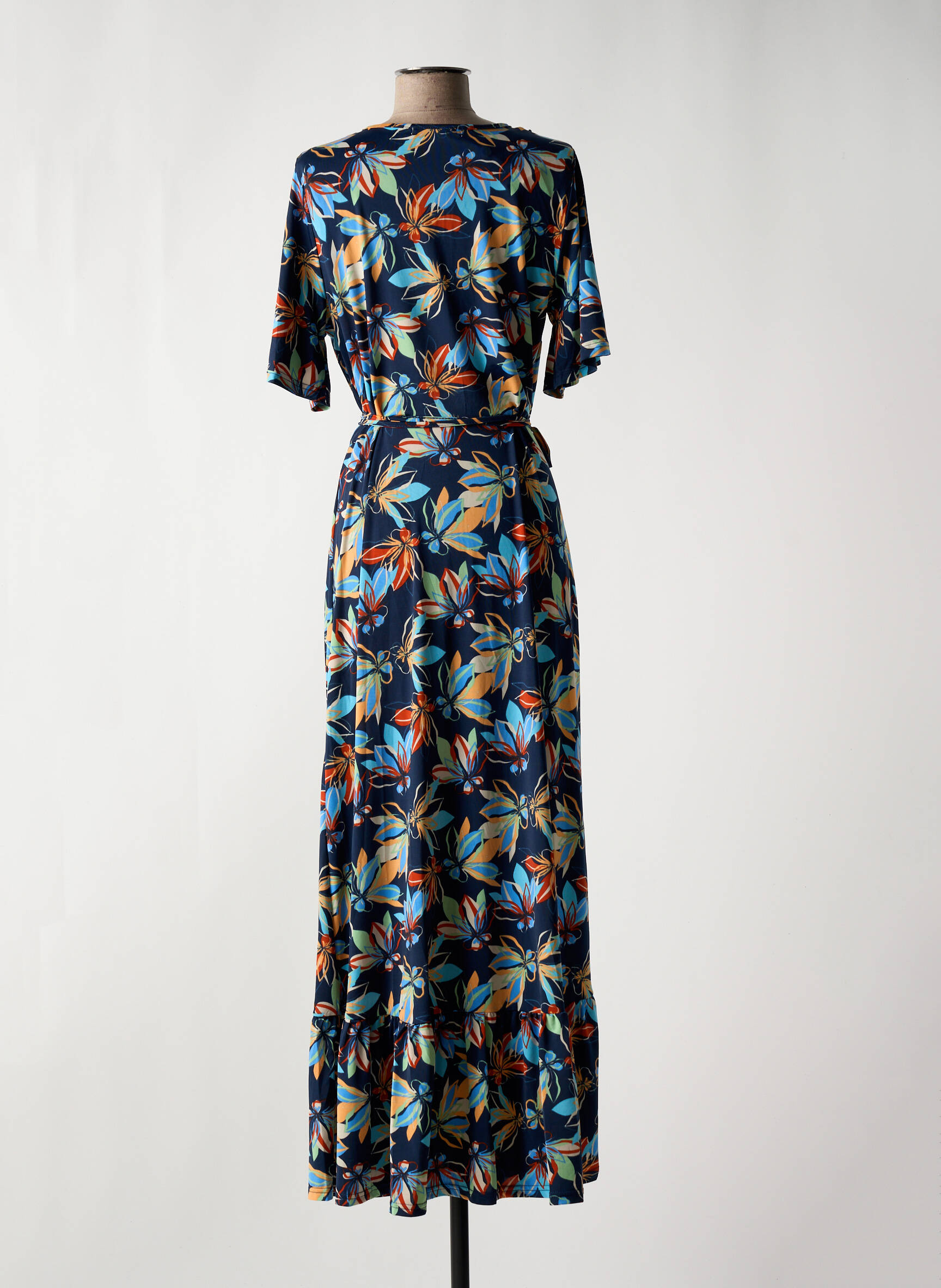 Rochie Lungă Md'm Albastru Mâneci Scurte