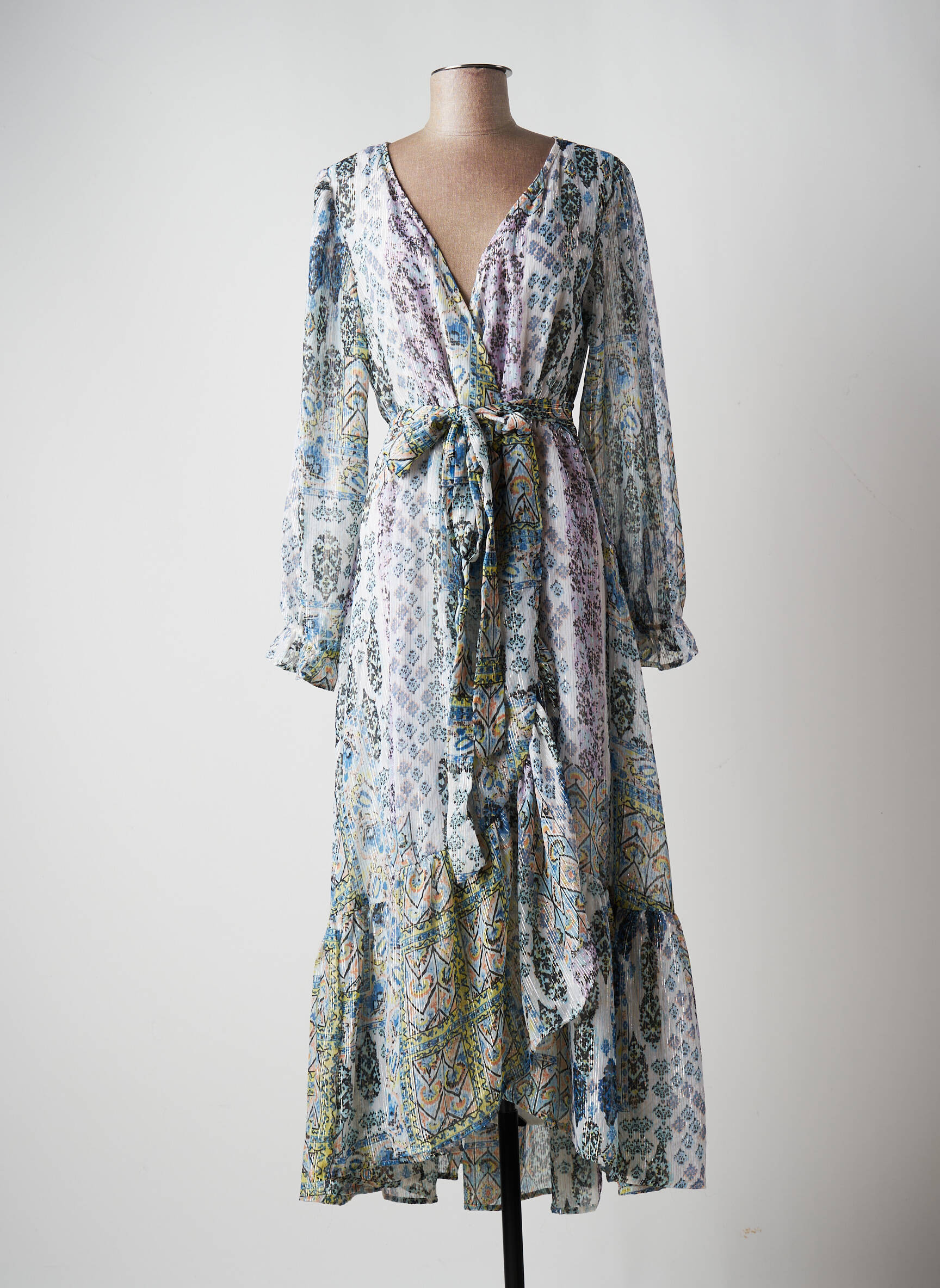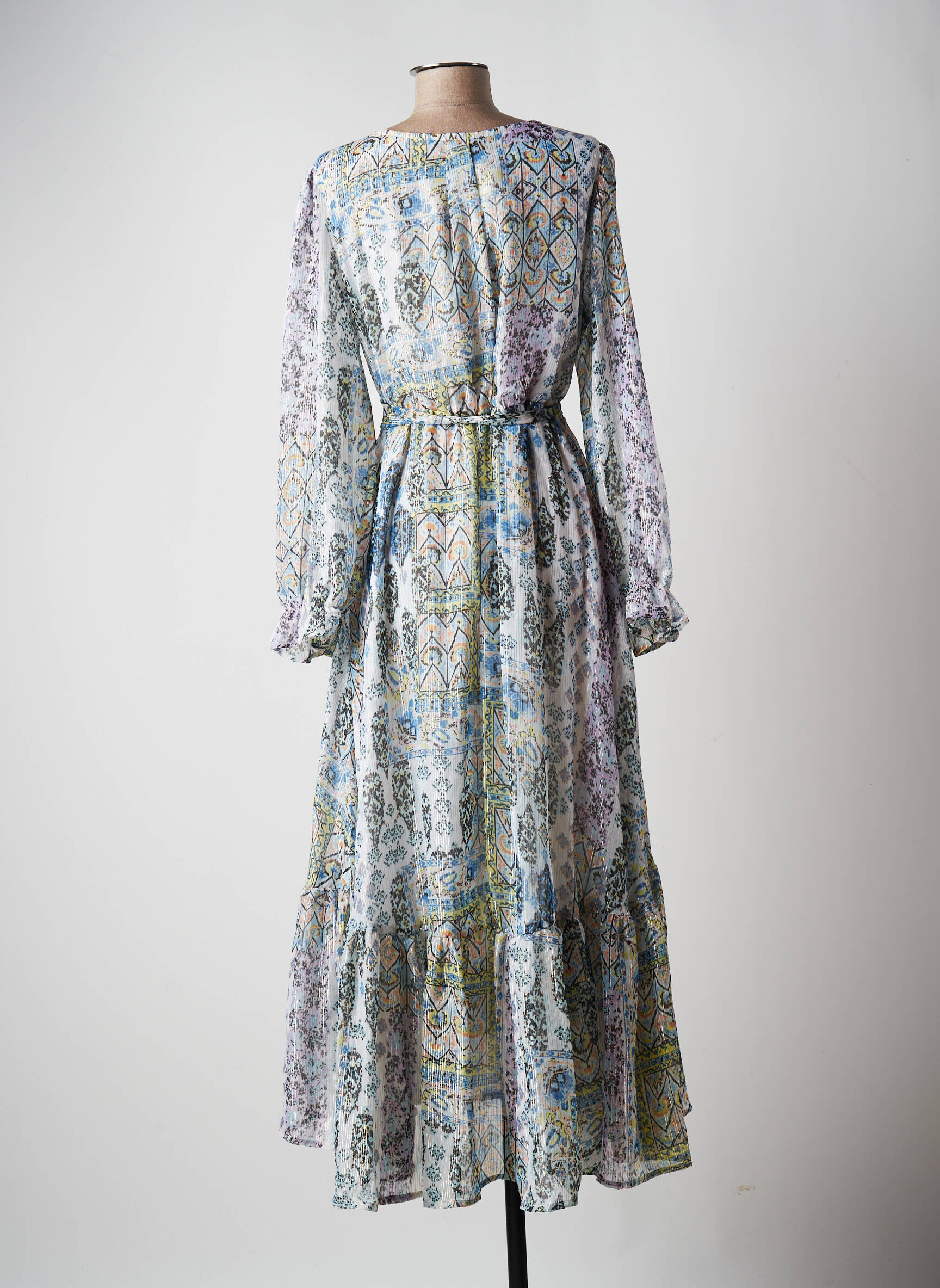 Rochie Lungă Multiples Albastru Mâneci Lungi