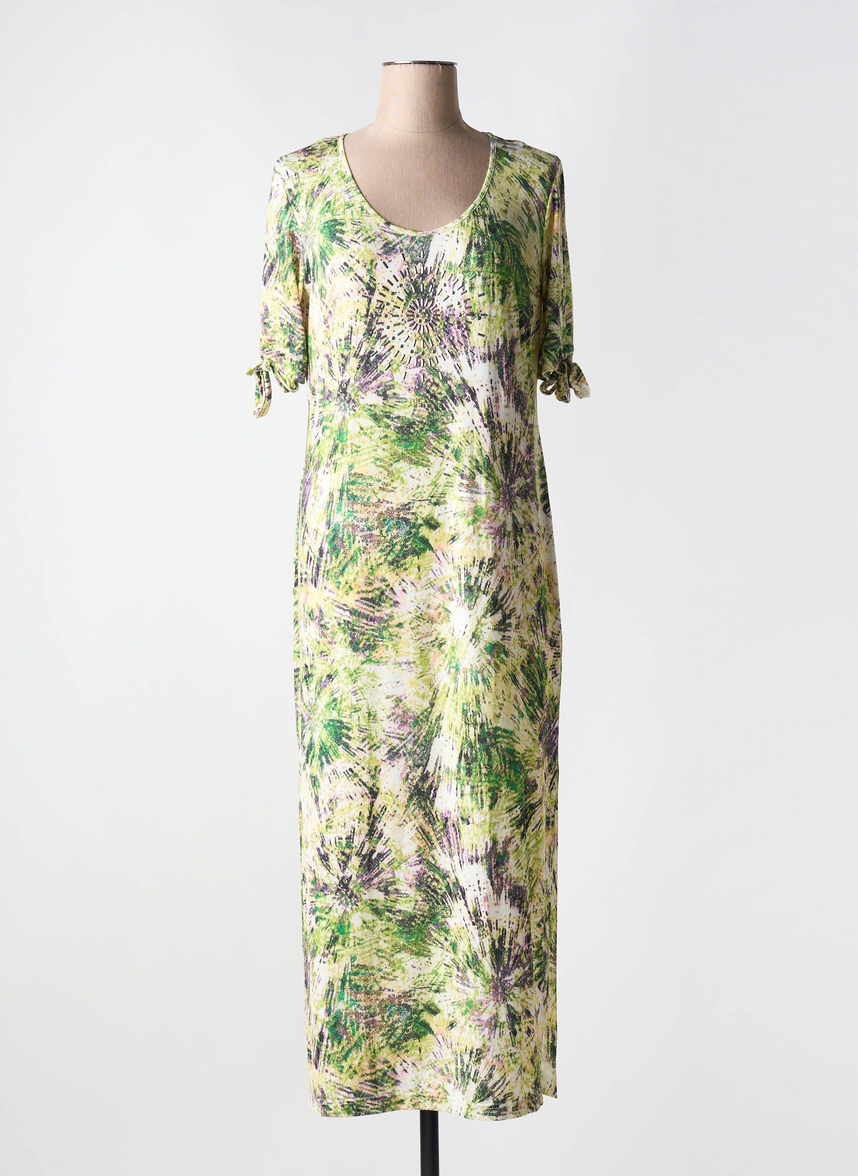 Rochie Lungă Nathalie Chaize Verde Mâneci Scurte