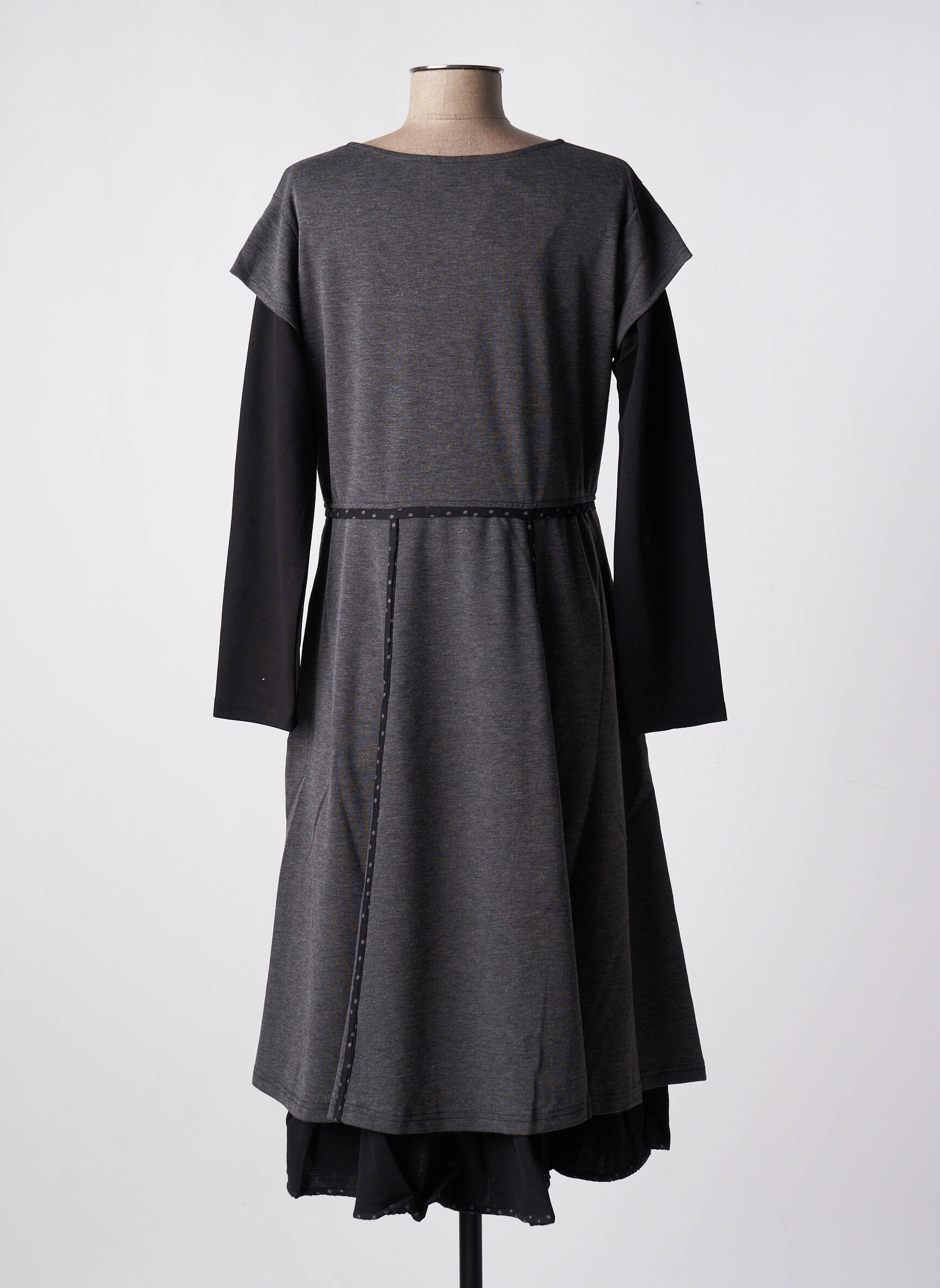 Rochie Lungă Nid D'abeille Gri Mâneci Lungi