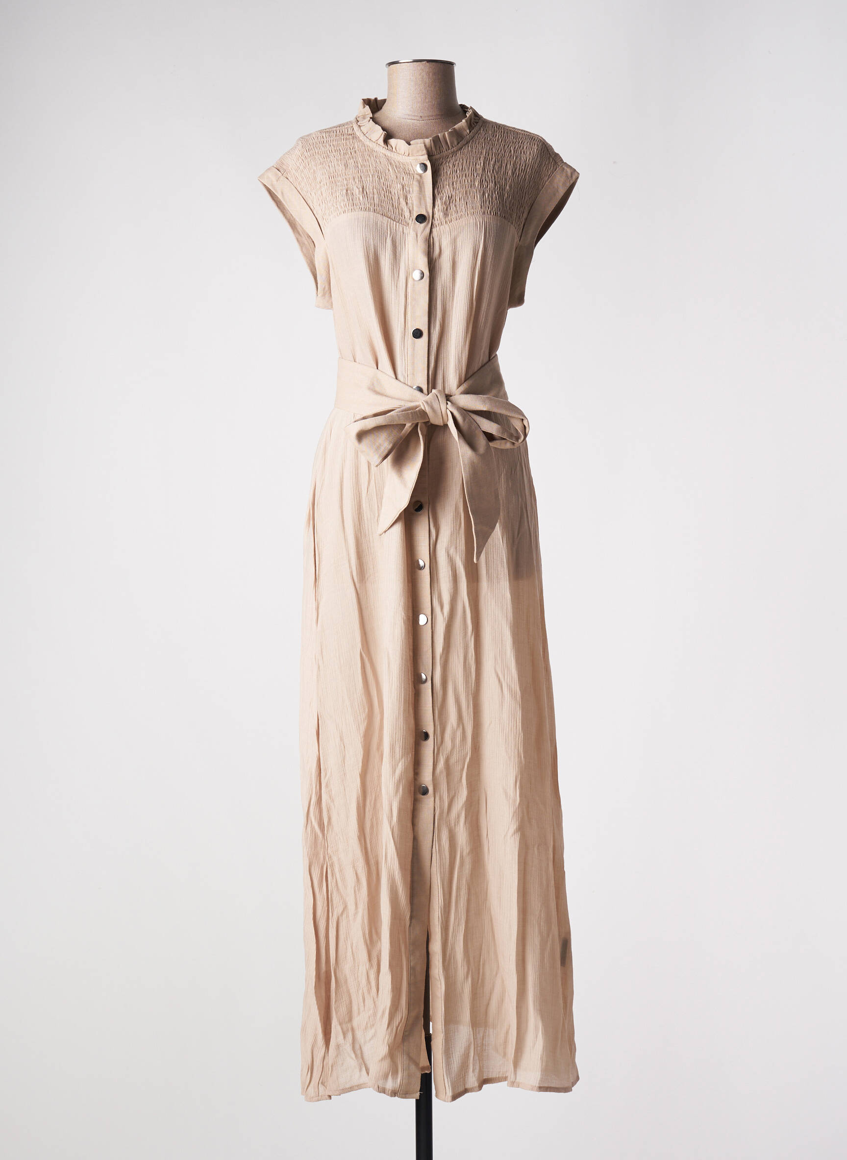 Rochie Lungă Nü Bej Mâneci Scurte