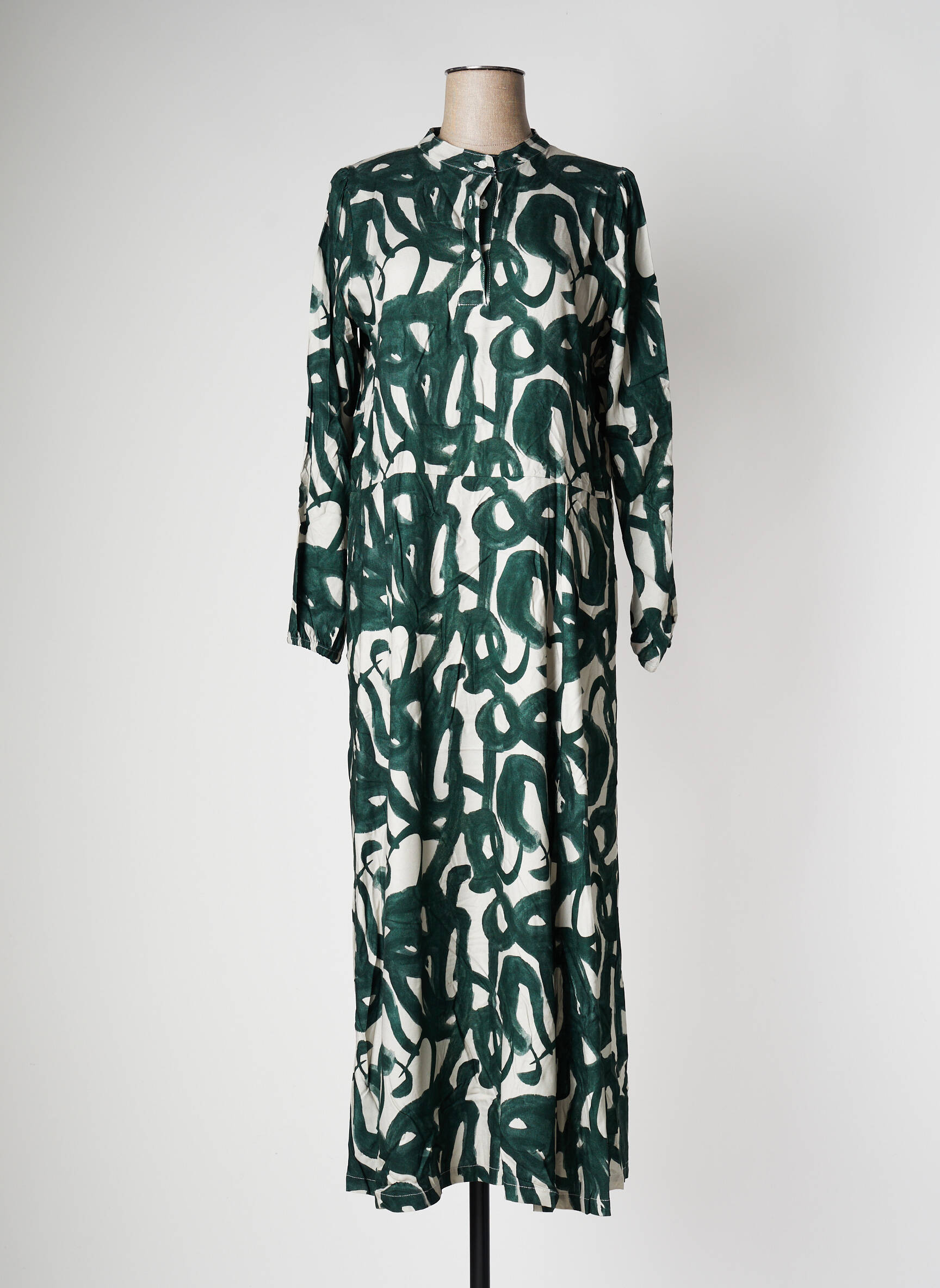 Rochie Lungă Pan Verde Mâneci Lungi