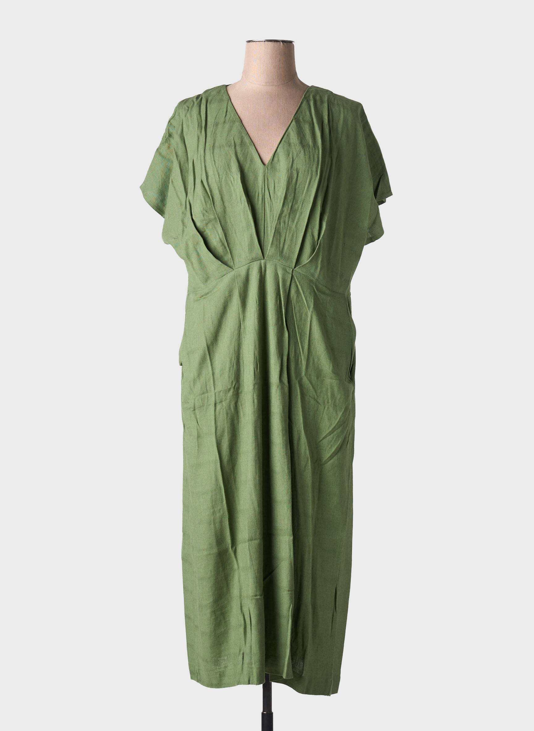 Rochie Lungă Pan Verde Mâneci Scurte