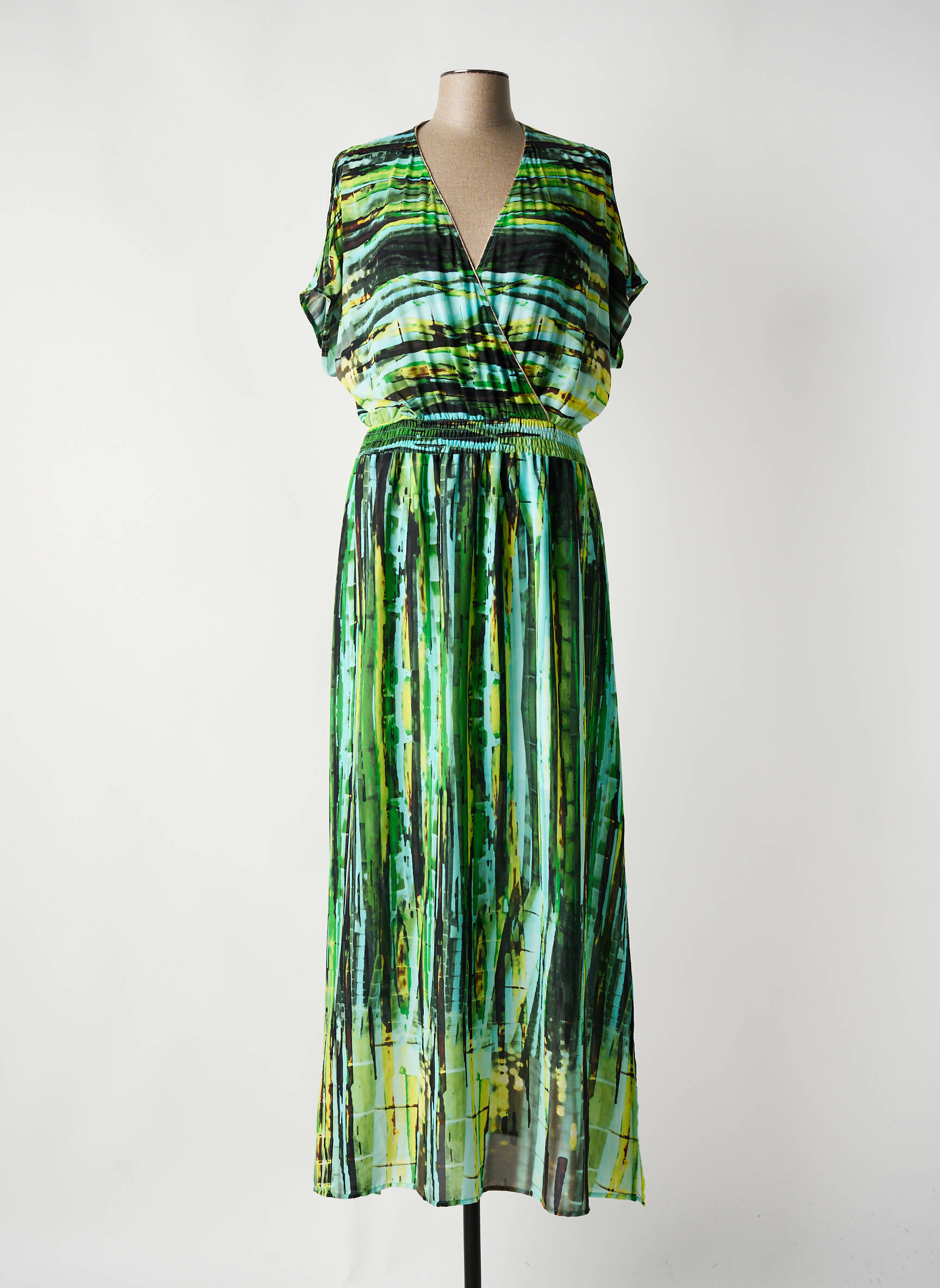 Rochie Lungă Paz Torras Verde Mâneci Scurte