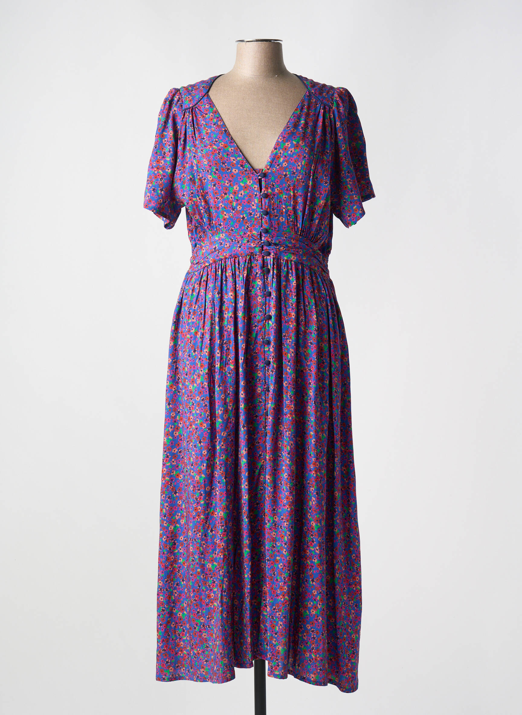 Rochie Lungă Princesse Nomade Albastru Mâneci Scurte