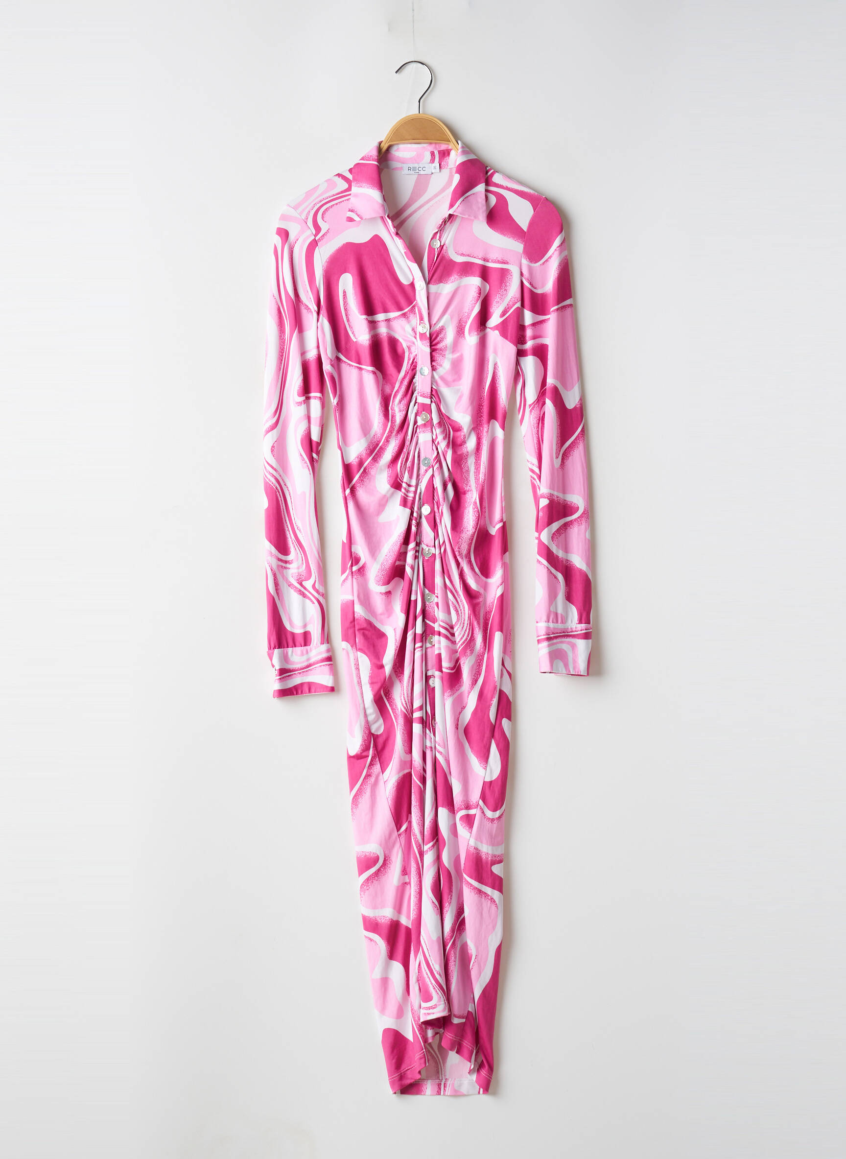 Rochie Lungă Recc Roz Mâneci Lungi