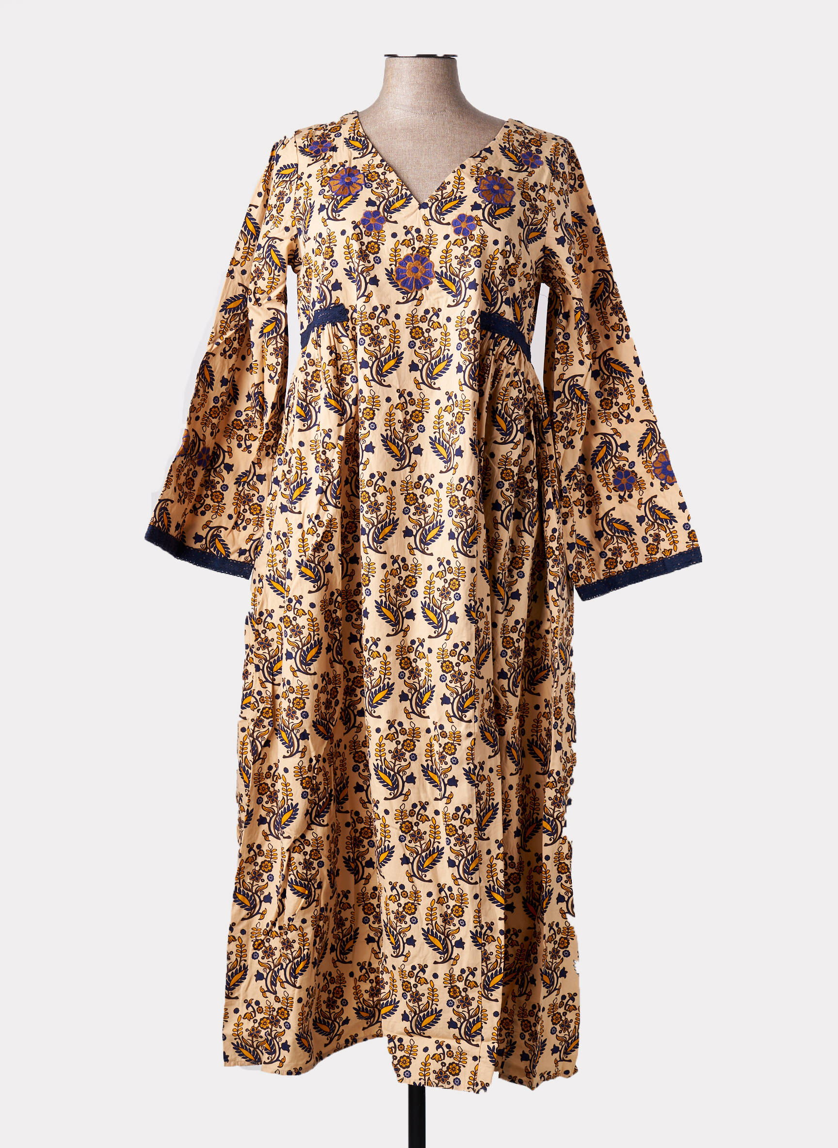 Rochie Lungă Rhum Raisin Galben Mâneci Lungi