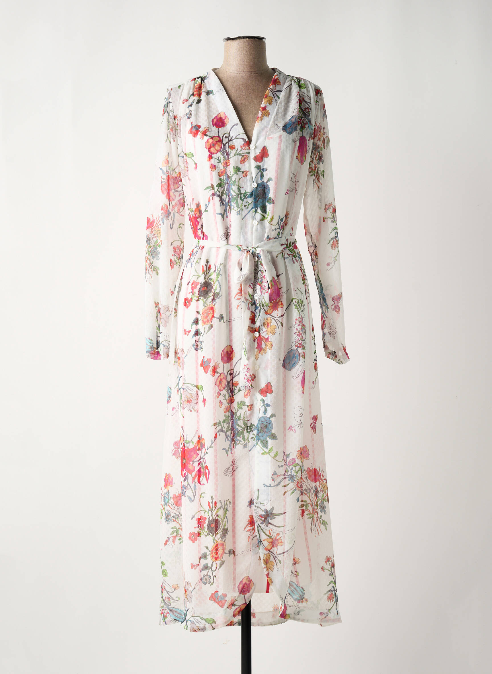 Rochie Lungă Silvian Heach Alb Mâneci Lungi