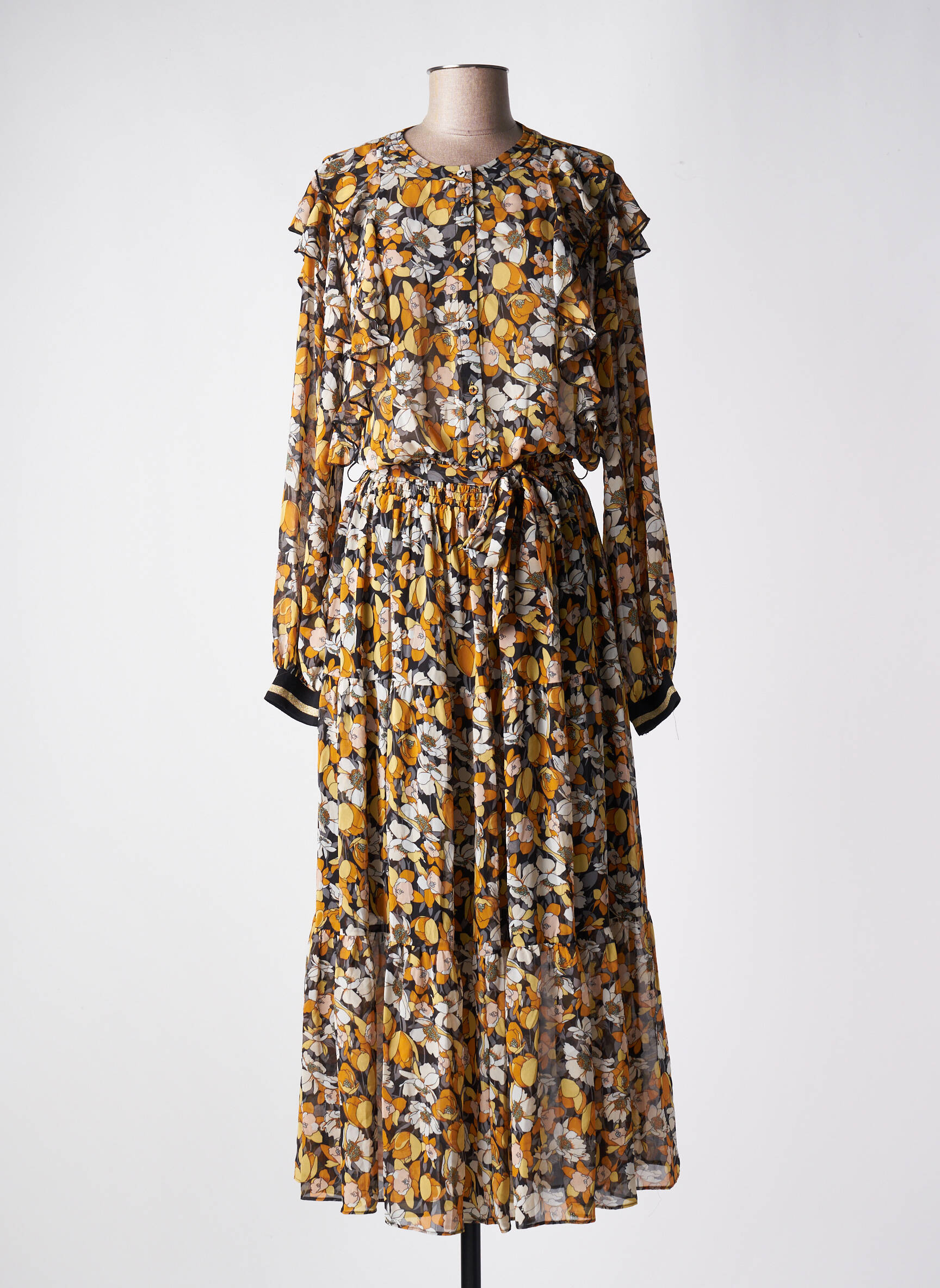 Rochie Lungă Summum Galben Mâneci Lungi
