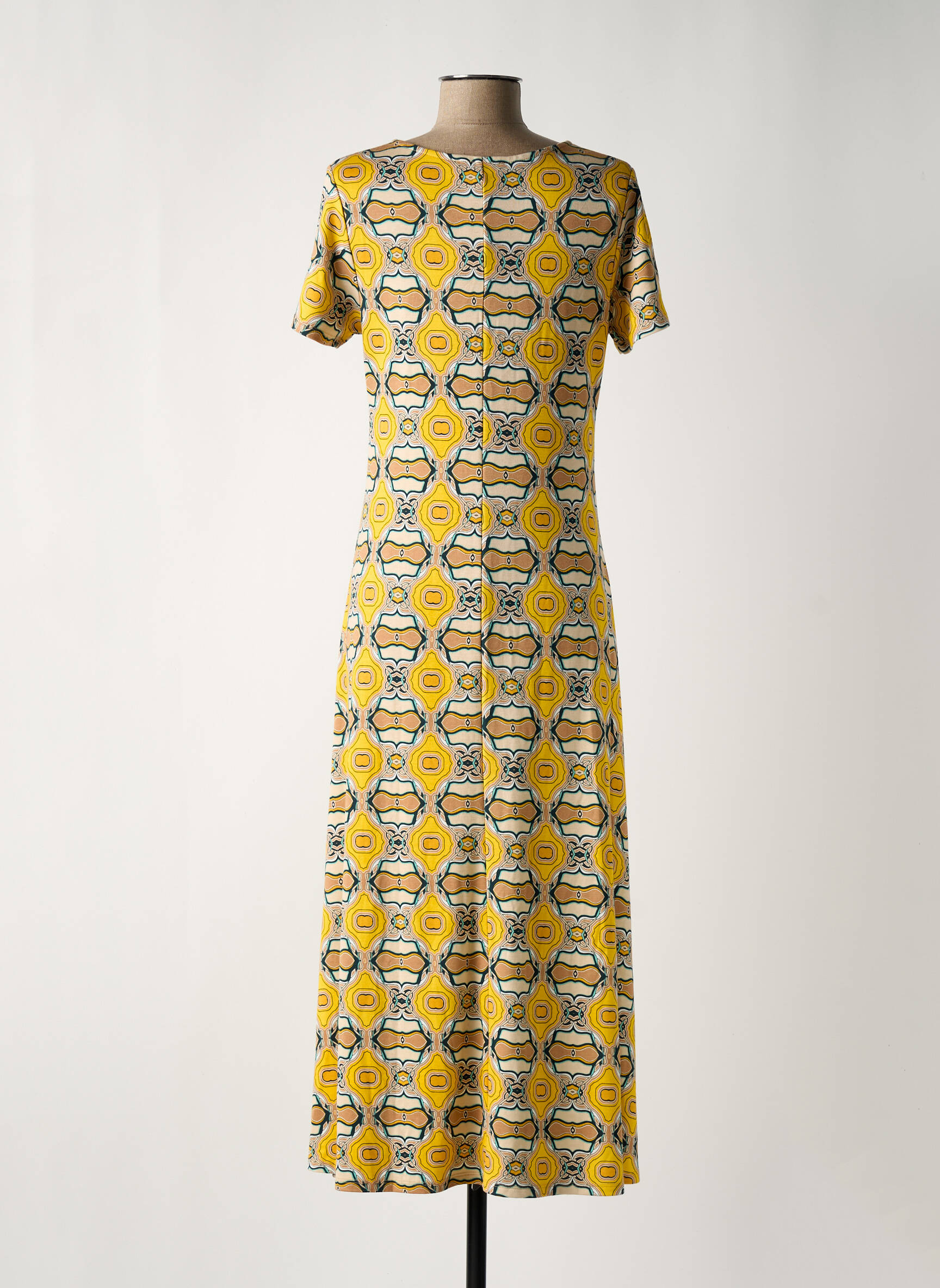 Rochie Lungă Surkana Galben Mâneci Scurte