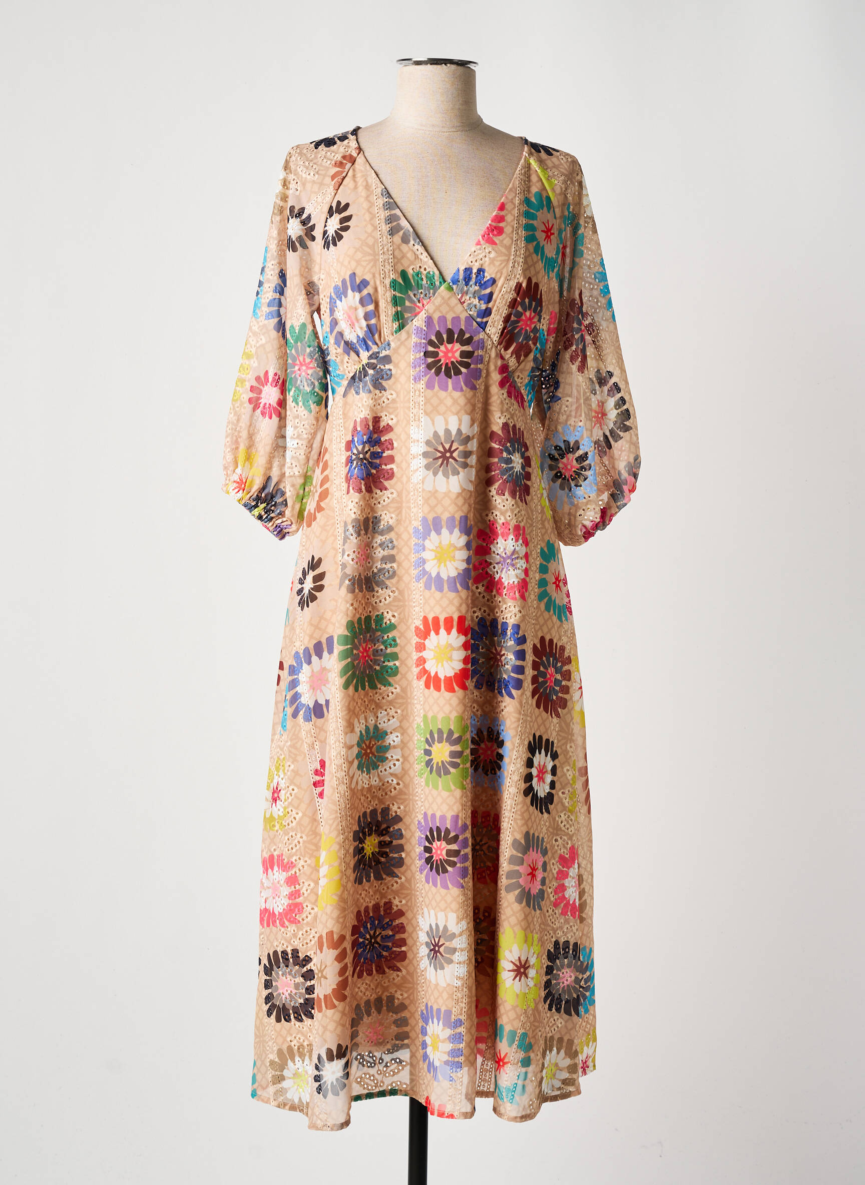 Rochie Lungă Traffic People Bej Mâneci 3/4