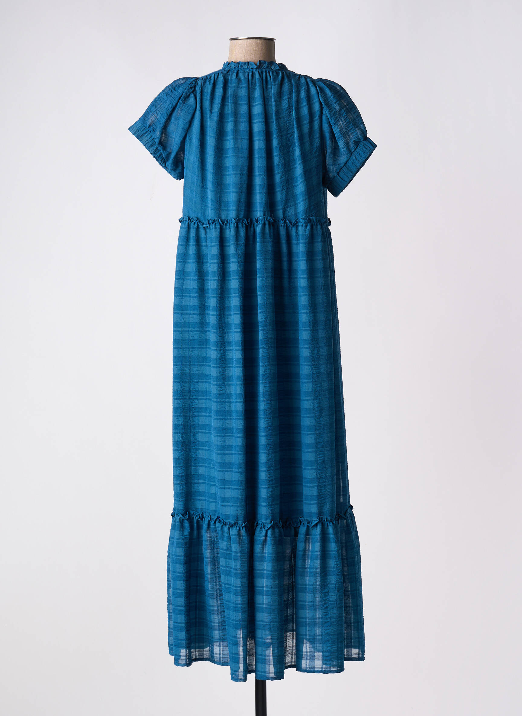 Rochie Lungă Van-dos Albastru Mâneci Scurte