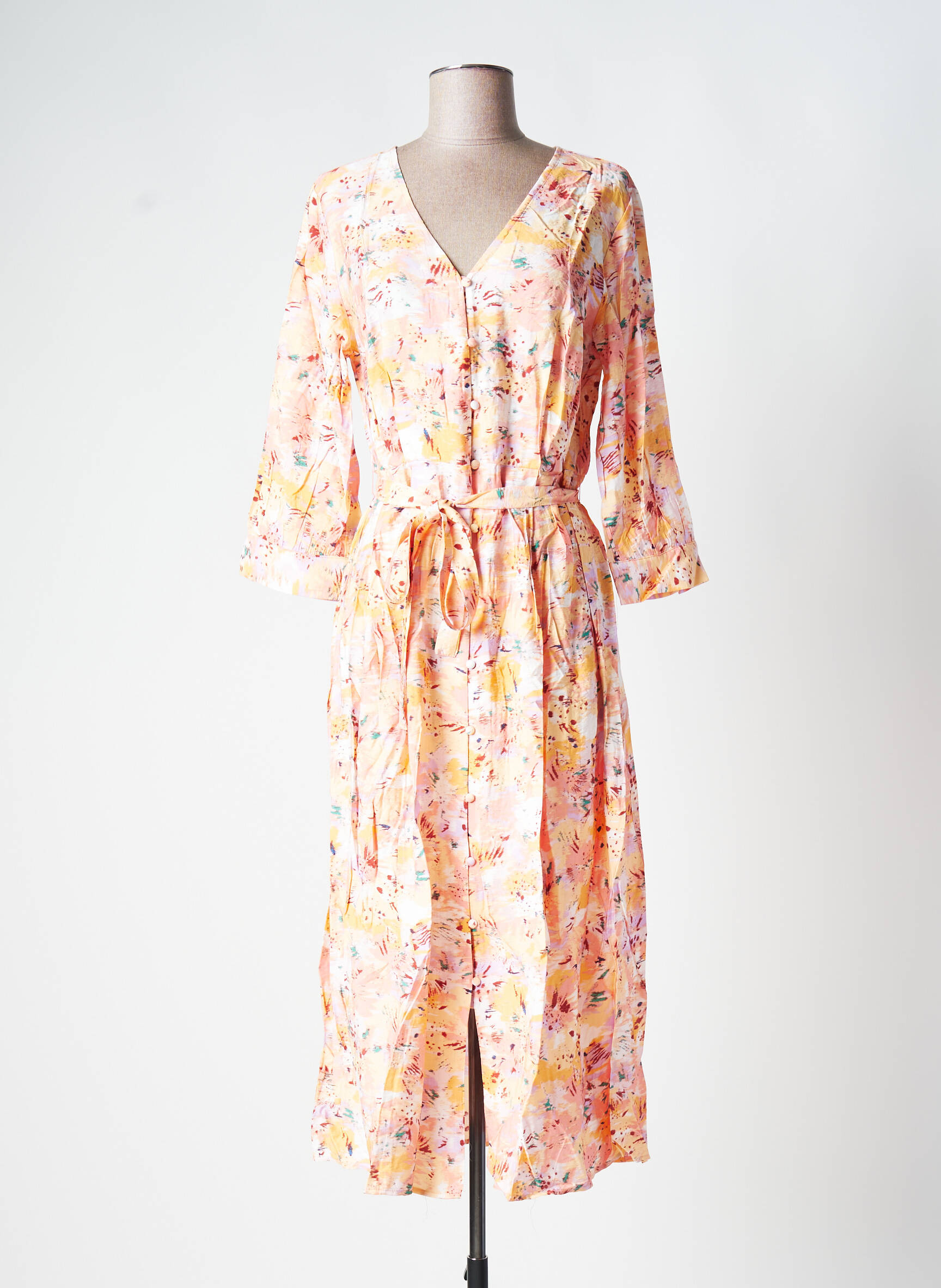 Rochie Lungă Vila Portocaliu Mâneci 3/4