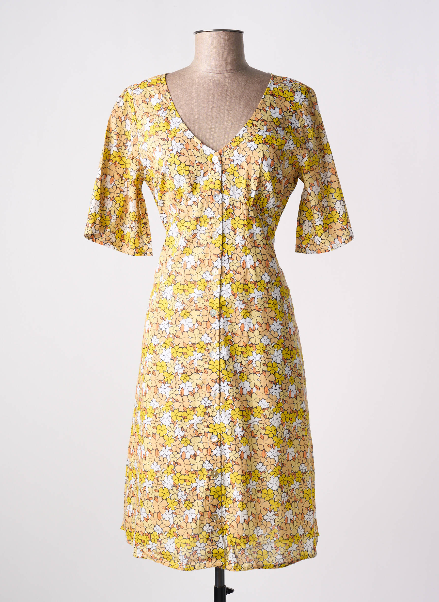 Rochie Midi Agathe & Louise Galben Mâneci Scurte