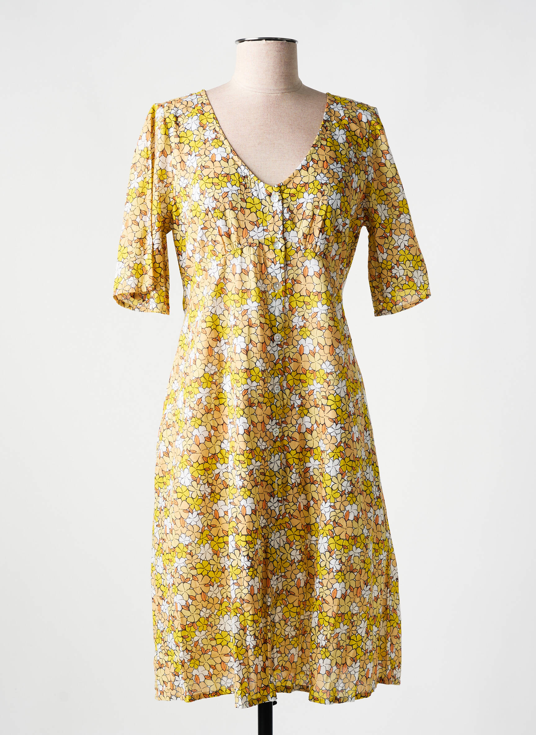 Rochie Midi Agathe & Louise Galben Mâneci Scurte