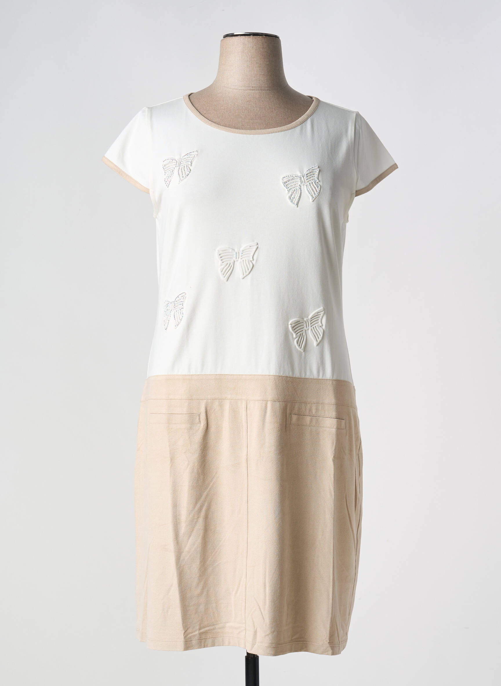 Rochie Midi Ananke Bej Mâneci Scurte