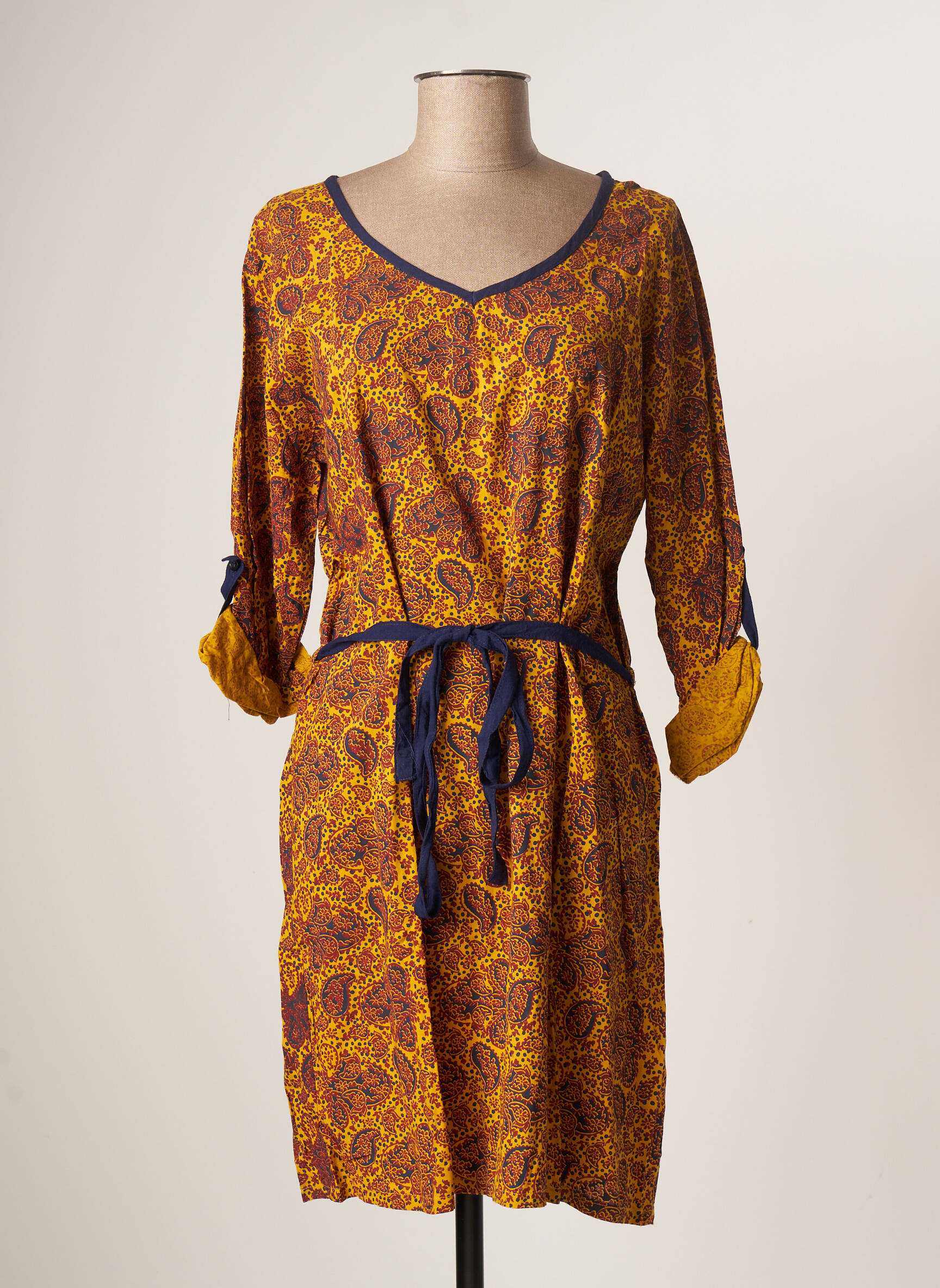 Rochie Midi Bamboo's Galben Mâneci Lungi