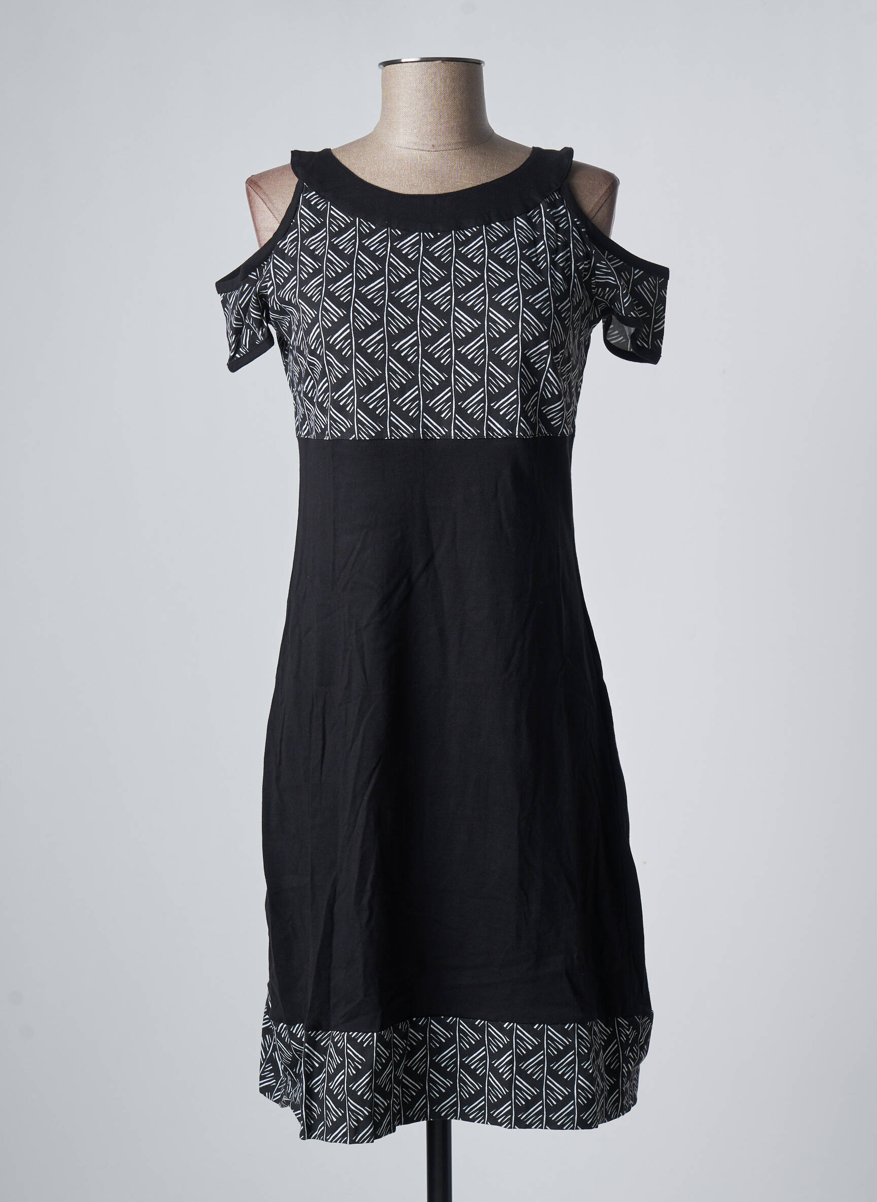 Rochie Midi Bamboo's Negru Mâneci Scurte