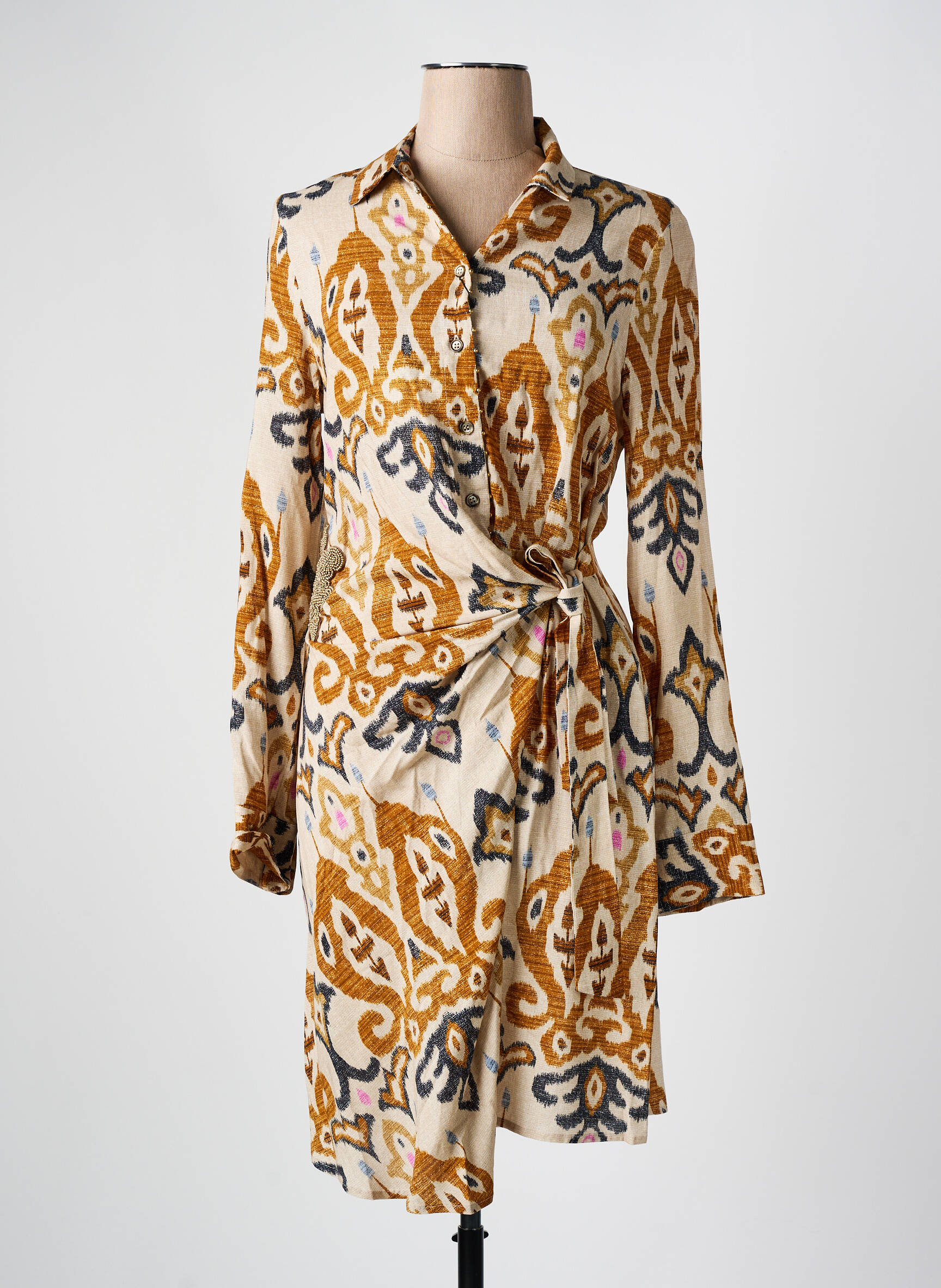 Rochie Midi Bazar Deluxe Bej Mâneci Lungi