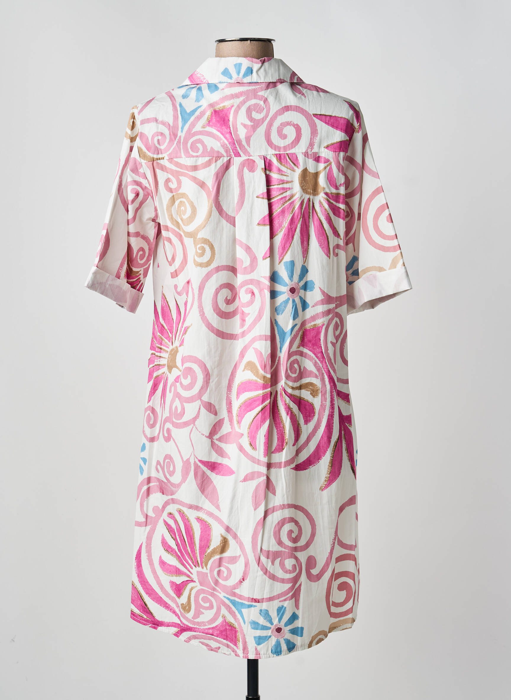 Rochie Midi Blanc Boheme Roz Mâneci Lungi