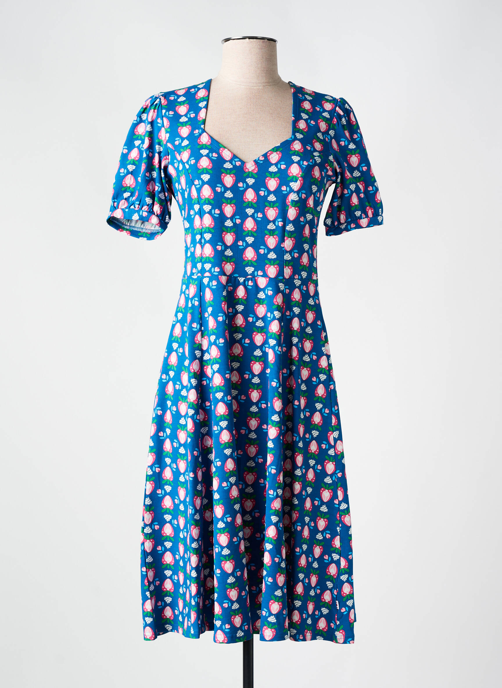 Rochie Midi Blutsgeschwister Albastru Mâneci Scurte