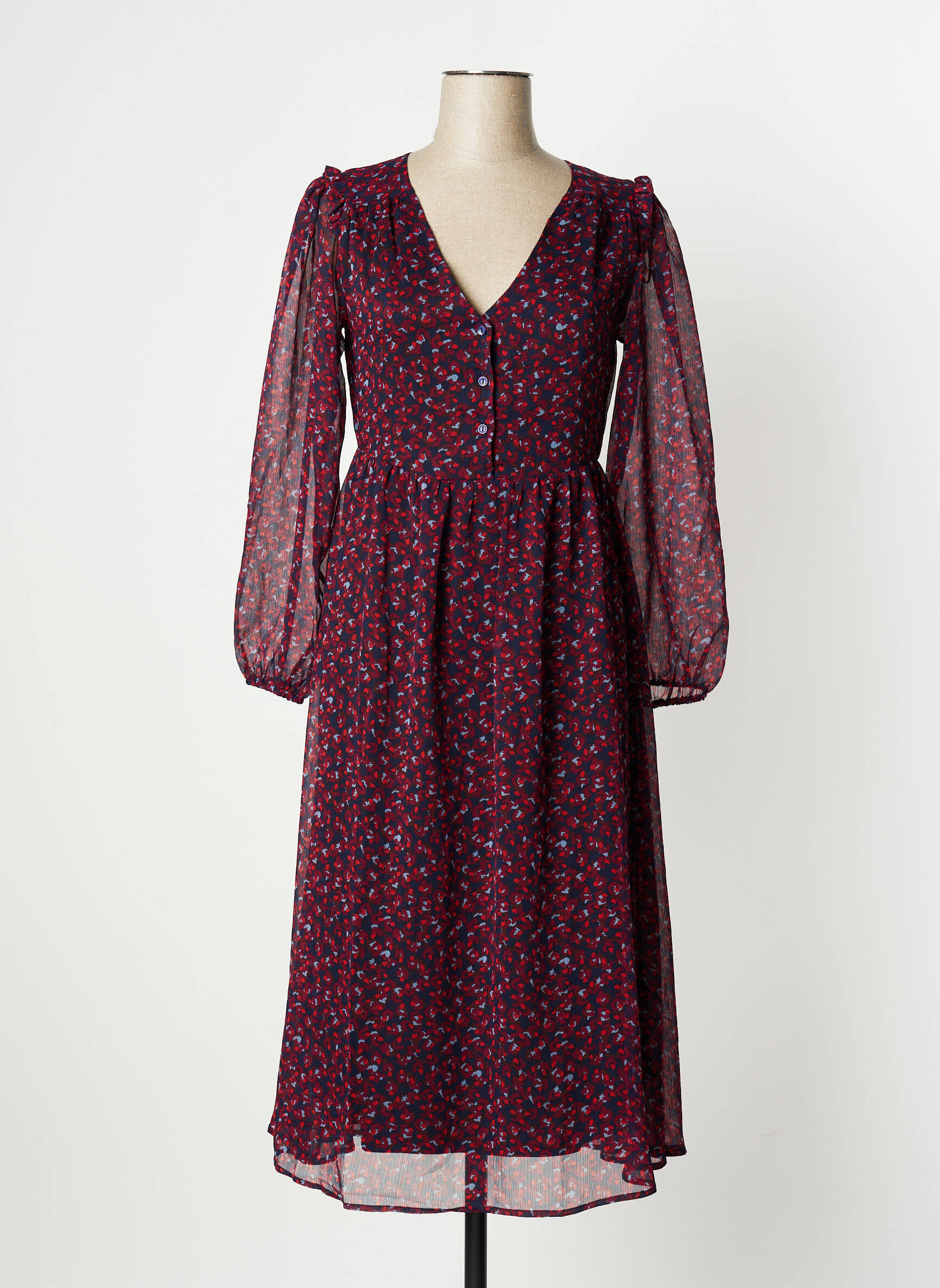Rochie Midi Bonobo Roșu Mâneci Lungi