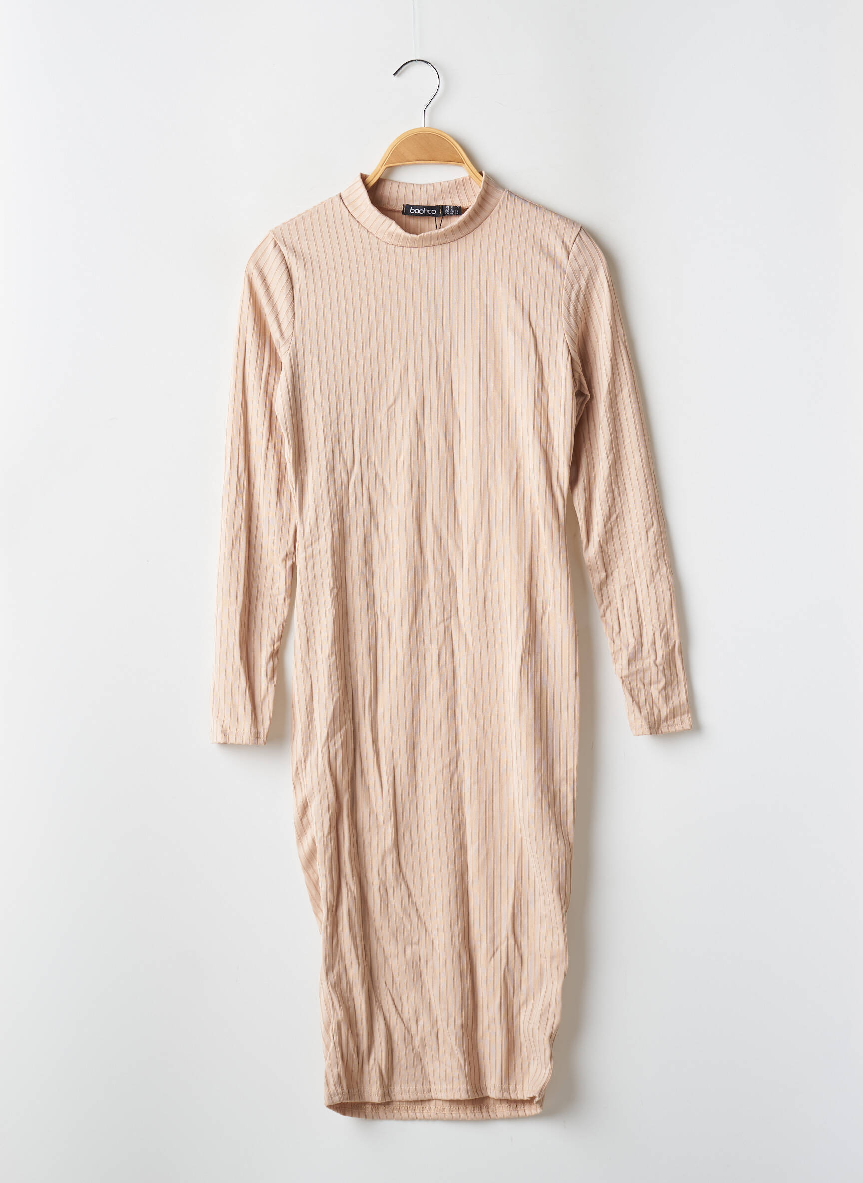 Rochie Midi Boohoo Bej Mâneci Lungi