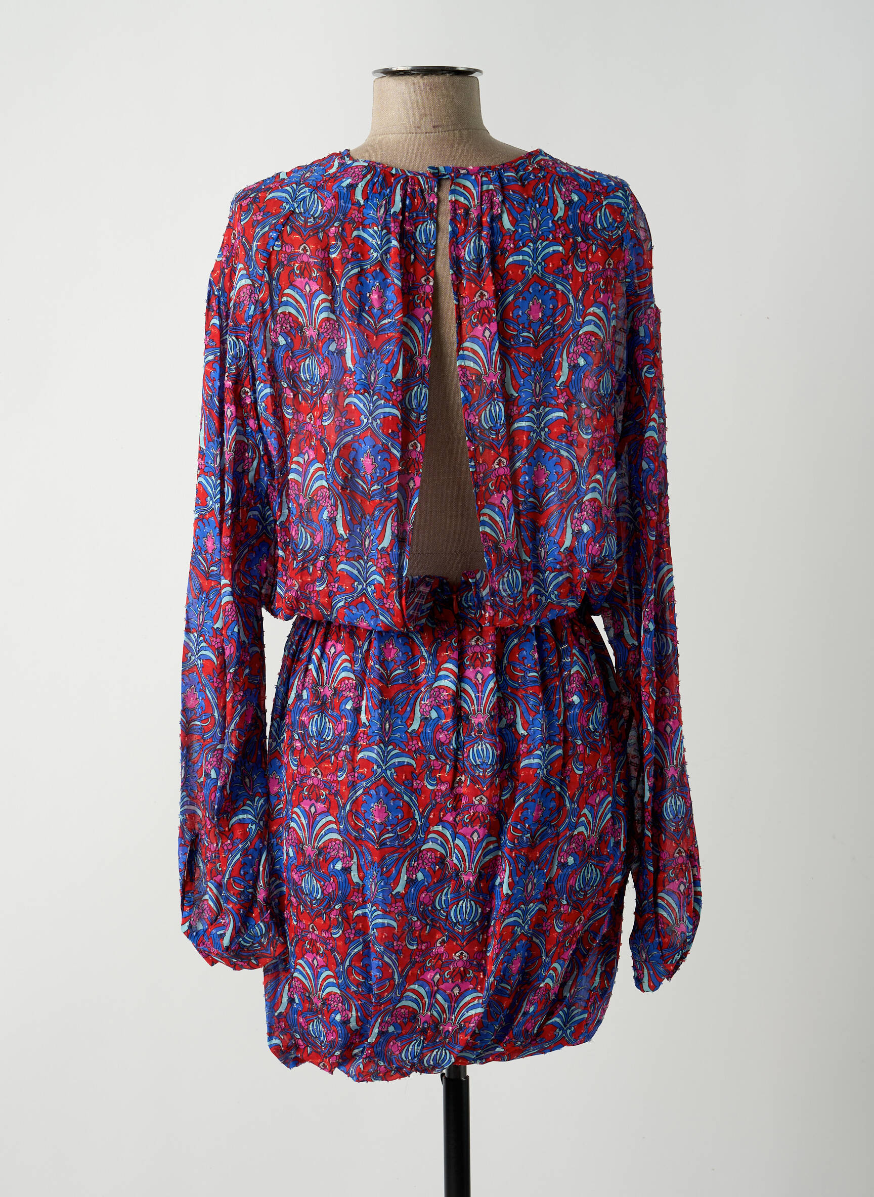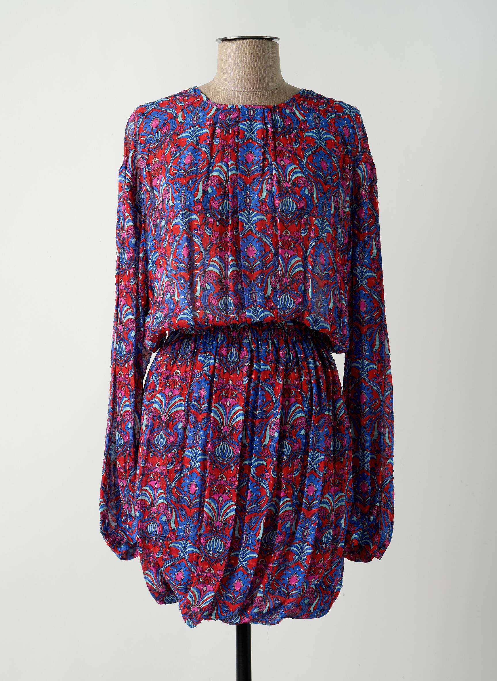 Rochie Midi Brand Unique Roșu Mâneci Lungi