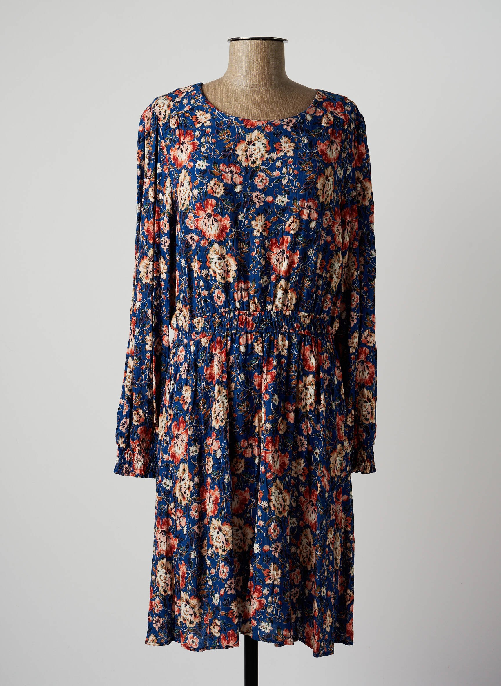 Rochie Midi C'est Beau La Vie Albastru Mâneci Lungi