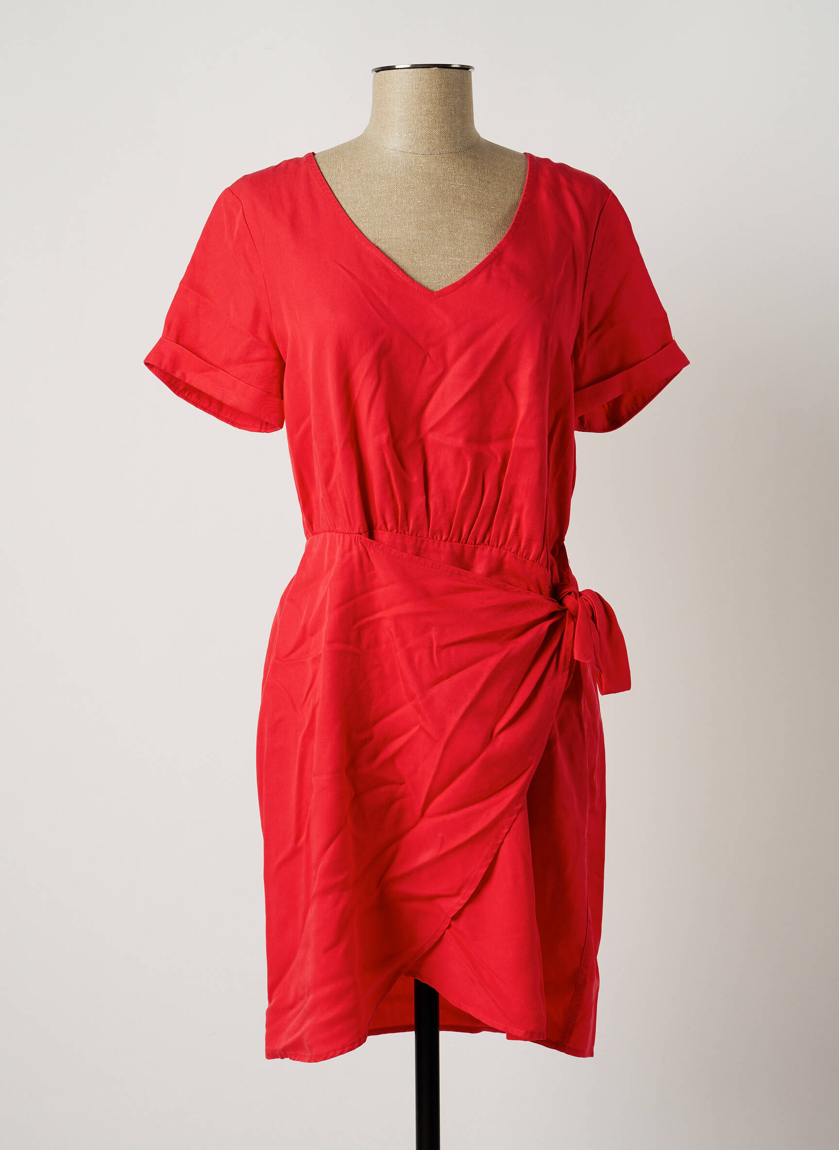 Rochie Midi C'est Beau La Vie Roșu Mâneci Scurte