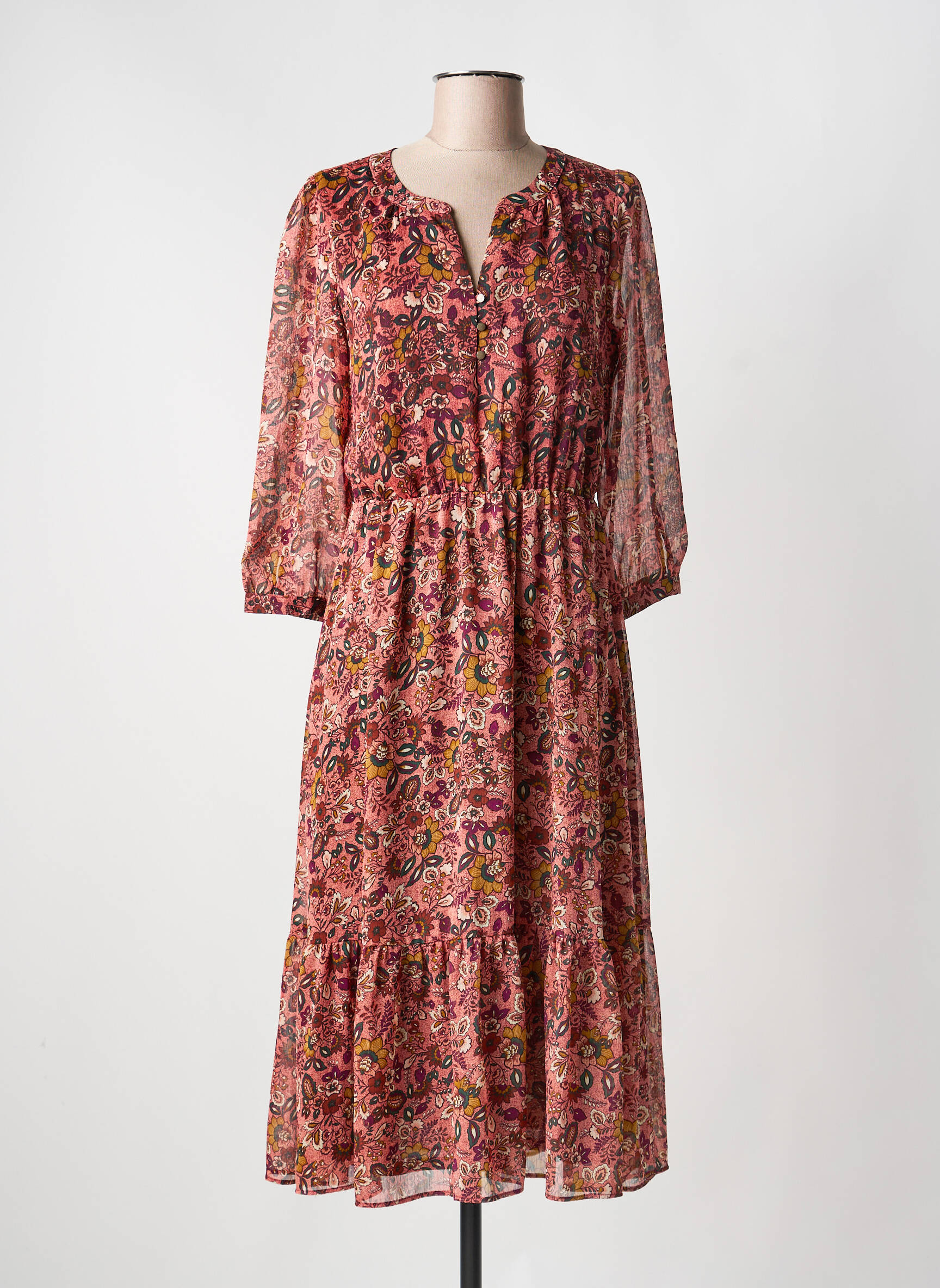 Rochie Midi C'est Beau La Vie Roz Mâneci Lungi