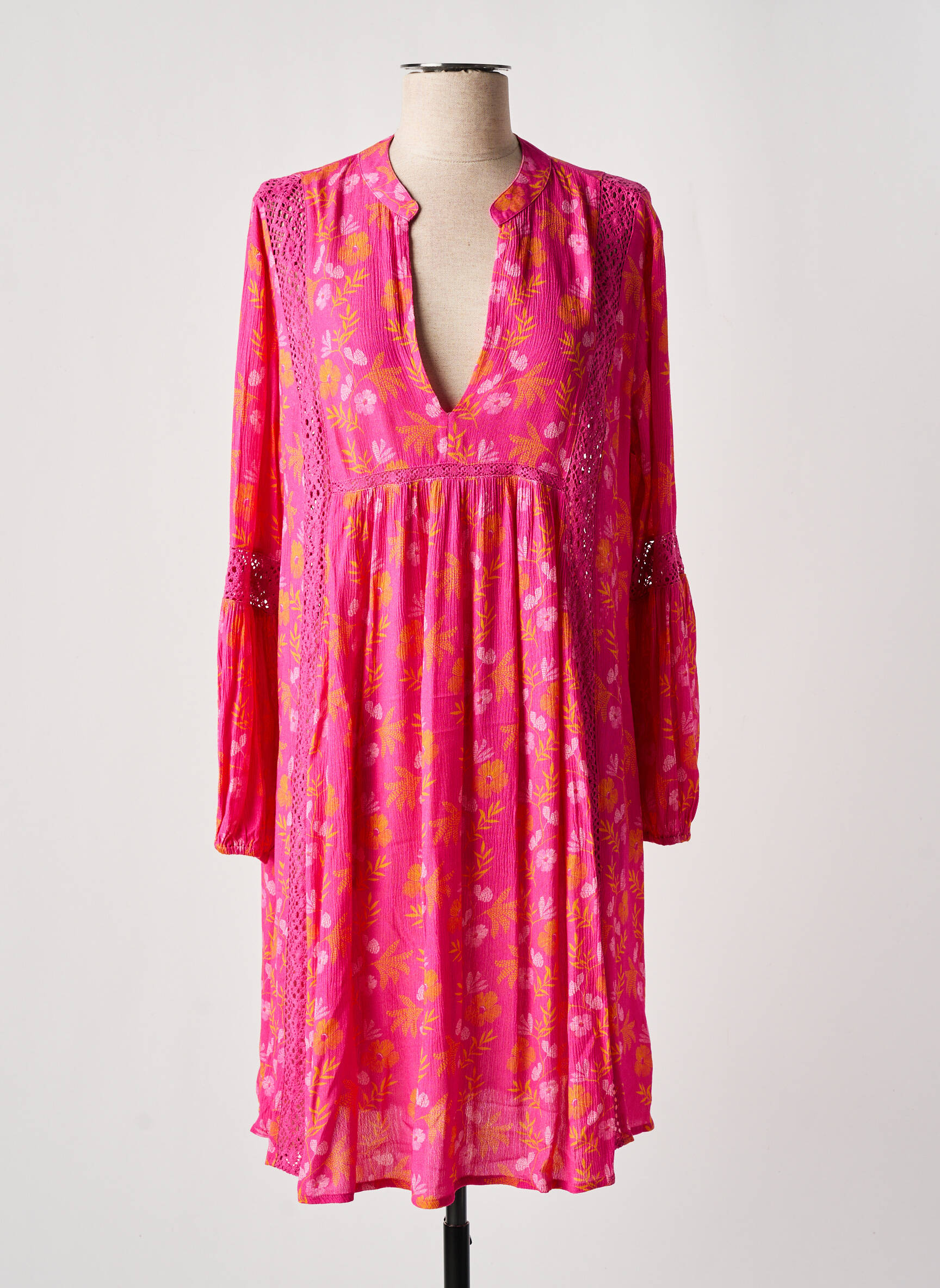 Rochie Midi Chicosoleil Roz Mâneci Lungi