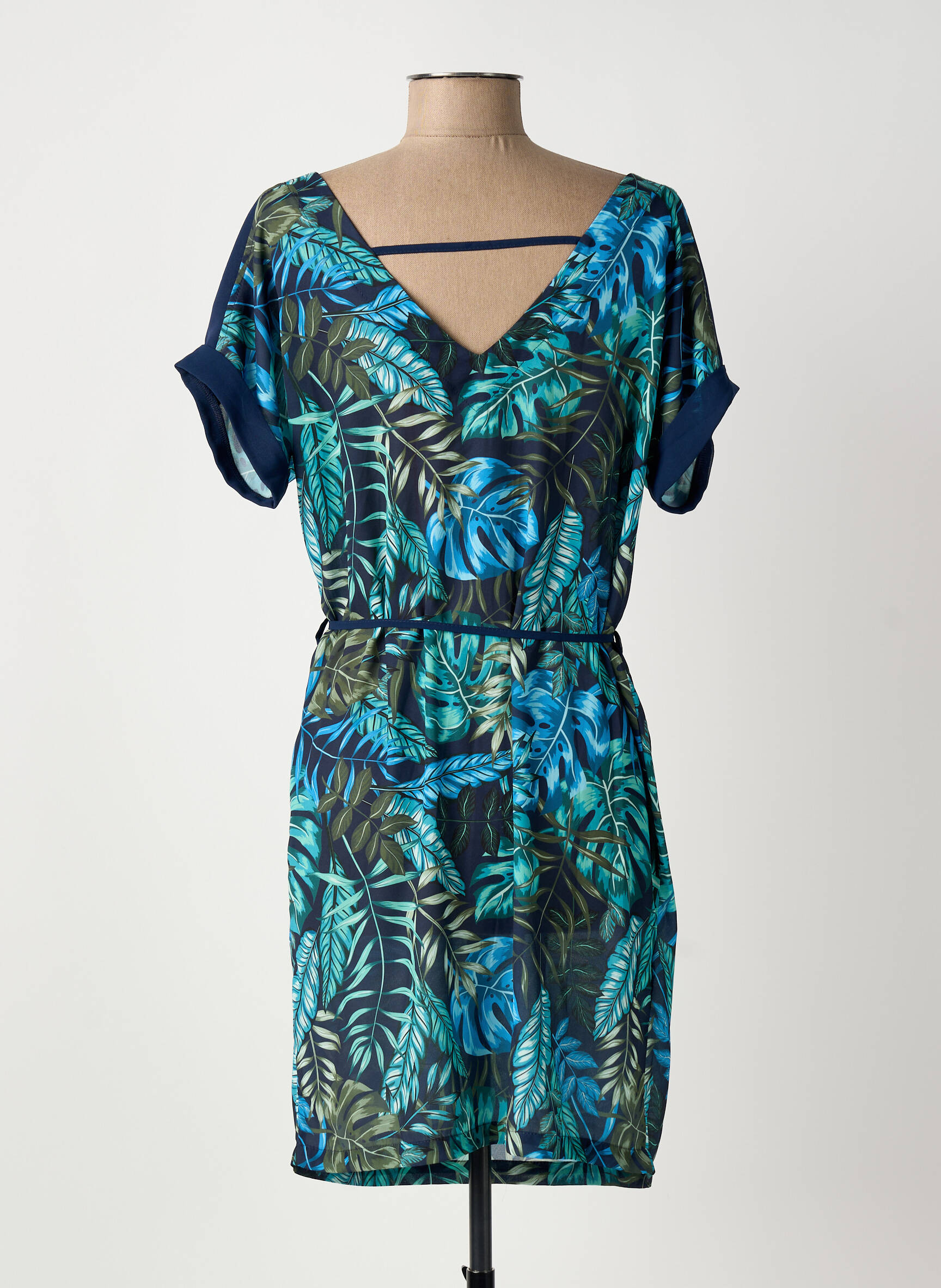 Rochie Midi Chrismas's Albastru Mâneci Scurte