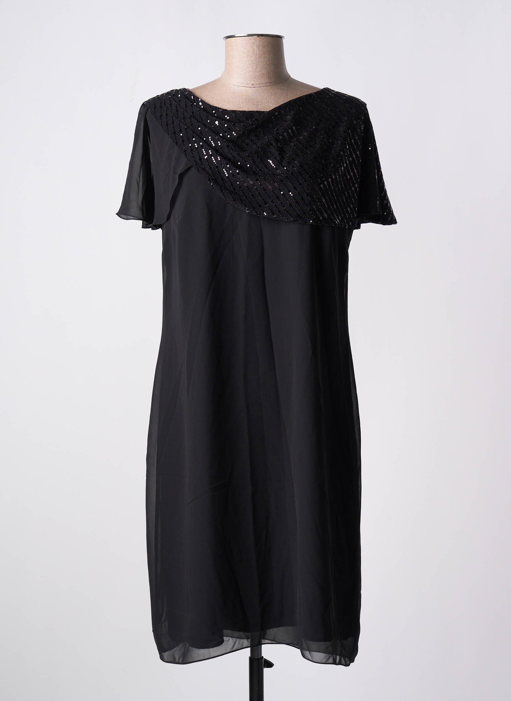 Rochie Midi Christine Laure Negru Mâneci Scurte