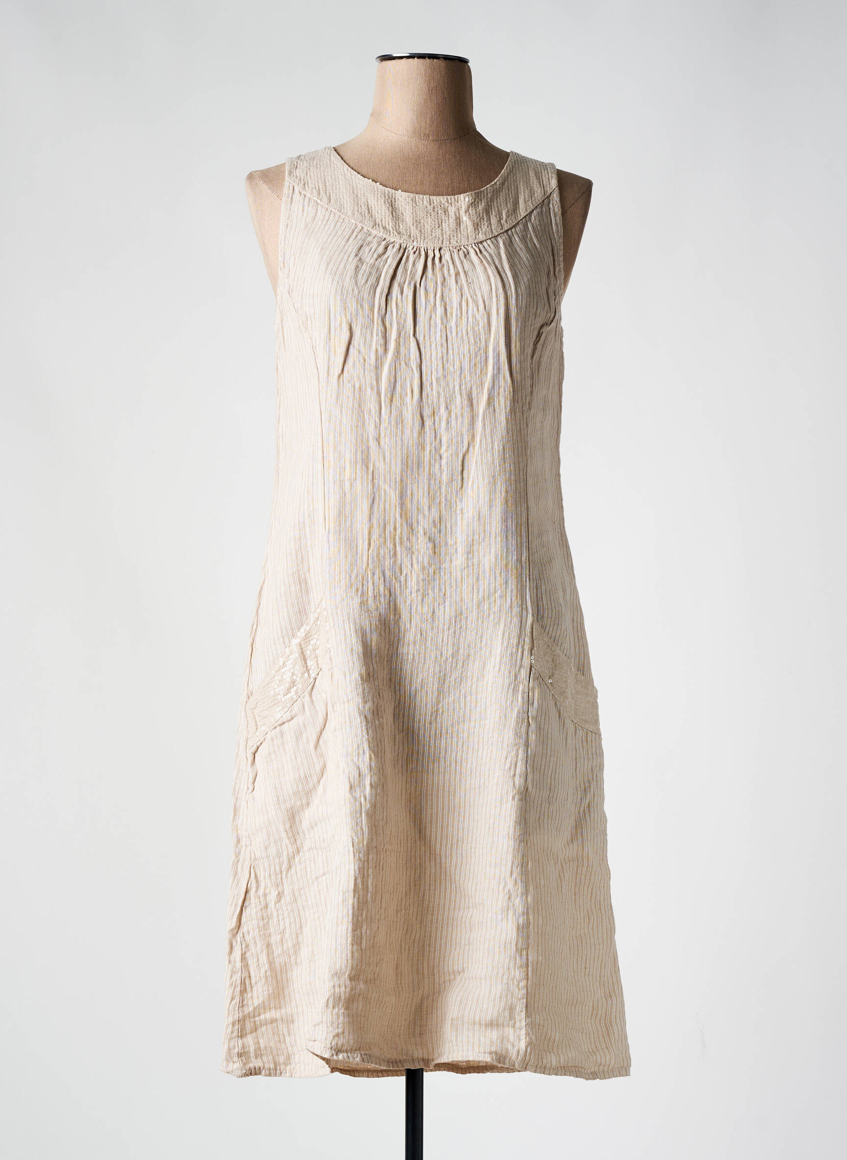 Rochie Midi Couleurs Du Temps Bej Fără Mâneci