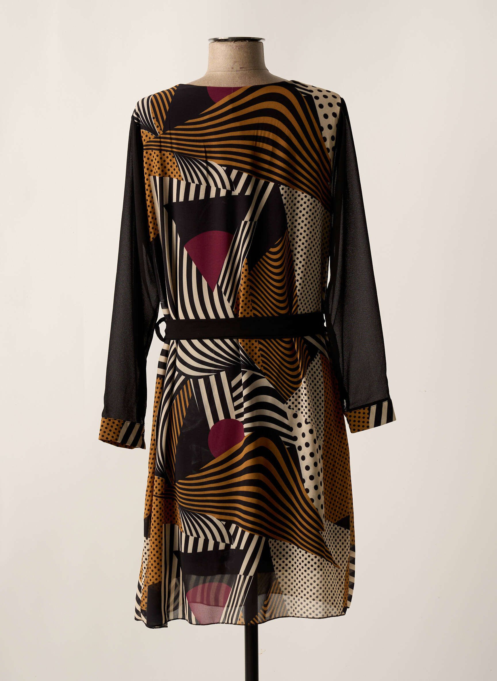 Rochie Midi Couleurs Du Temps Negru Mâneci Lungi