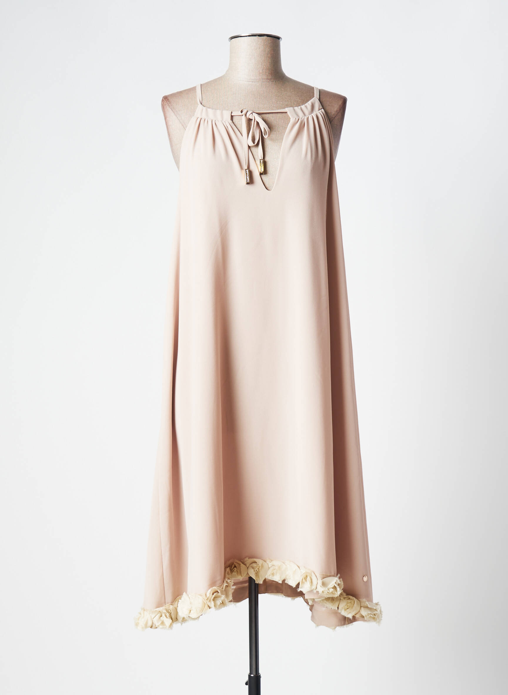 Rochie Midi Cristina Barros Bej Bretele Subțiri