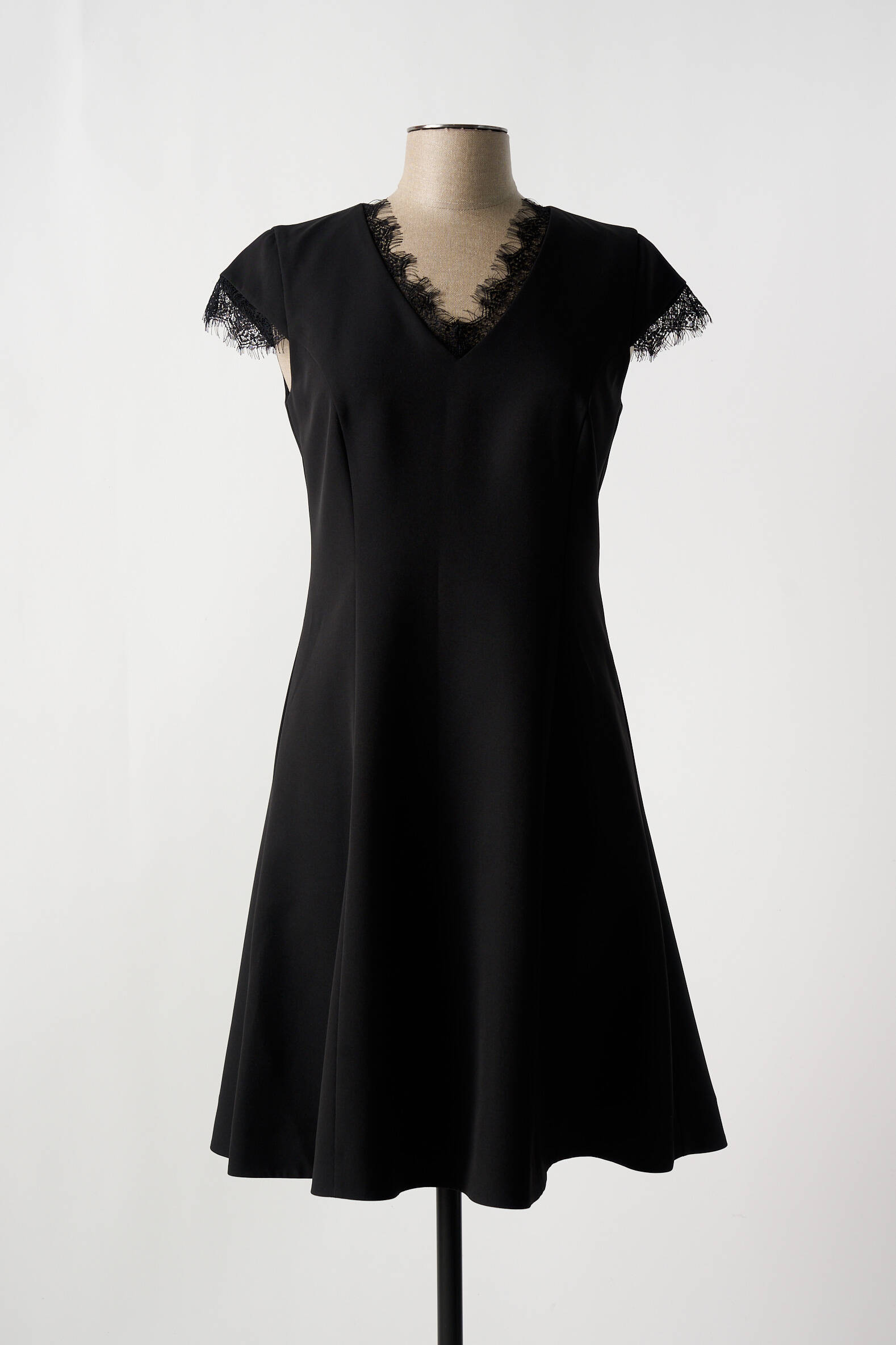 Rochie Midi D.exterior Negru Mâneci Scurte