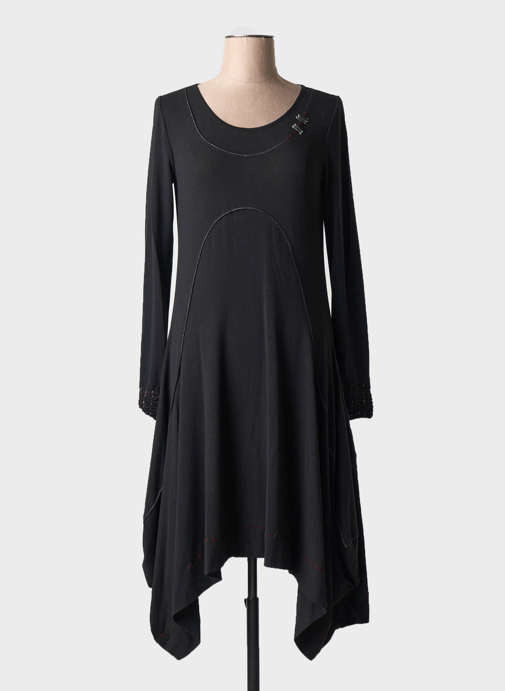 Rochie Midi Deca Negru Mâneci Lungi