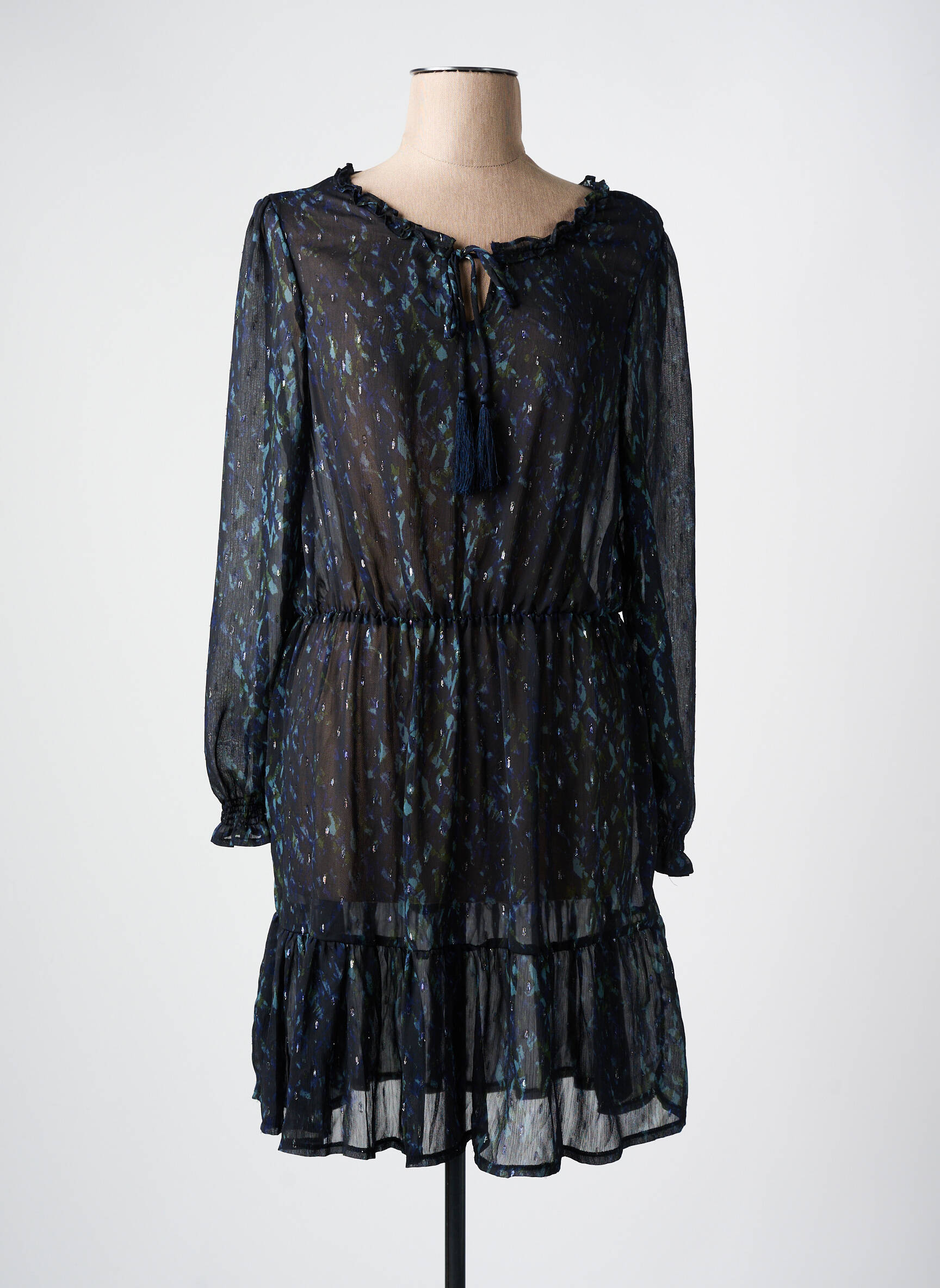 Rochie Midi Deeluxe Albastru Mâneci Lungi