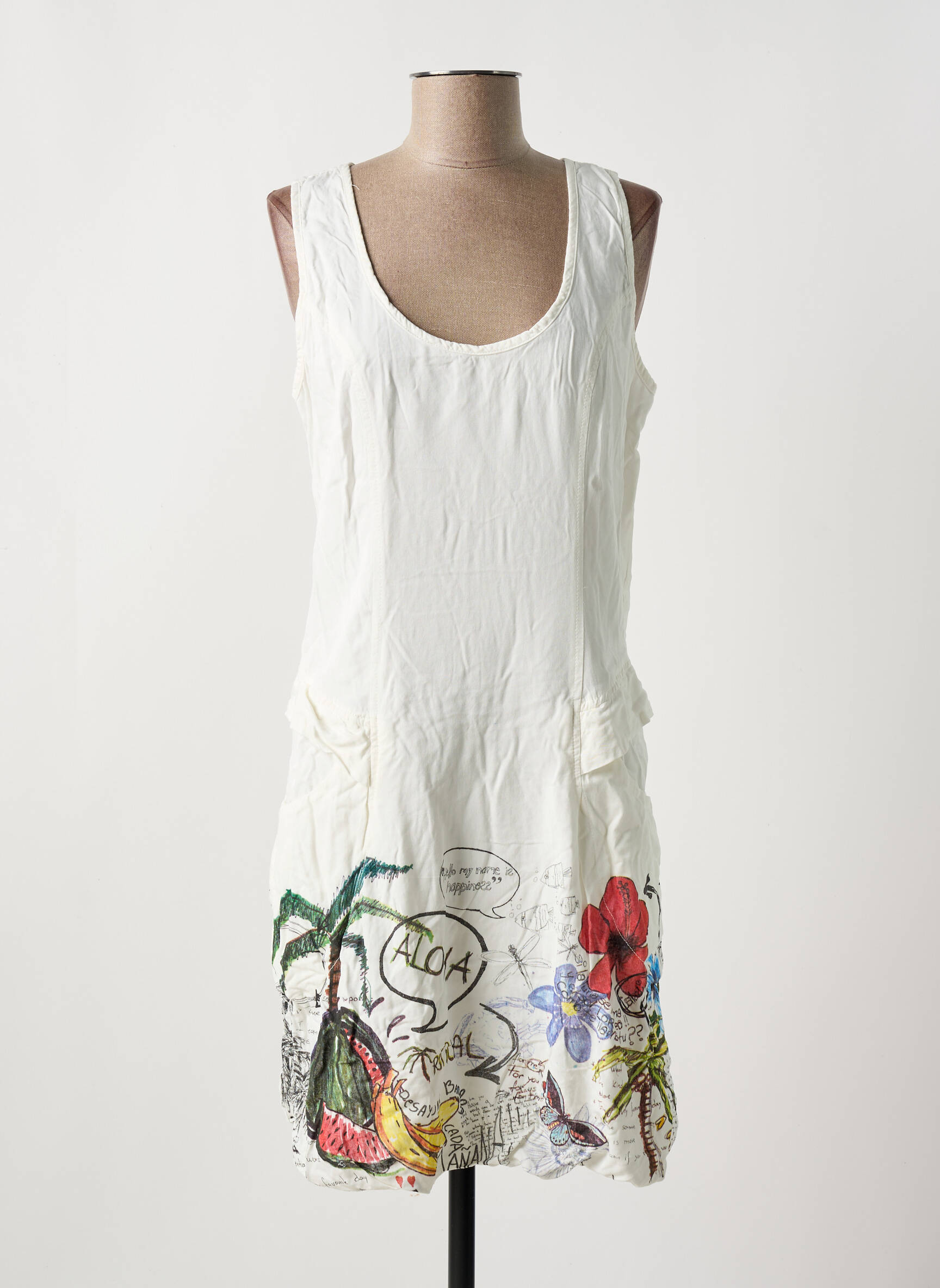 Rochie Midi Desigual Alb Fără Mâneci