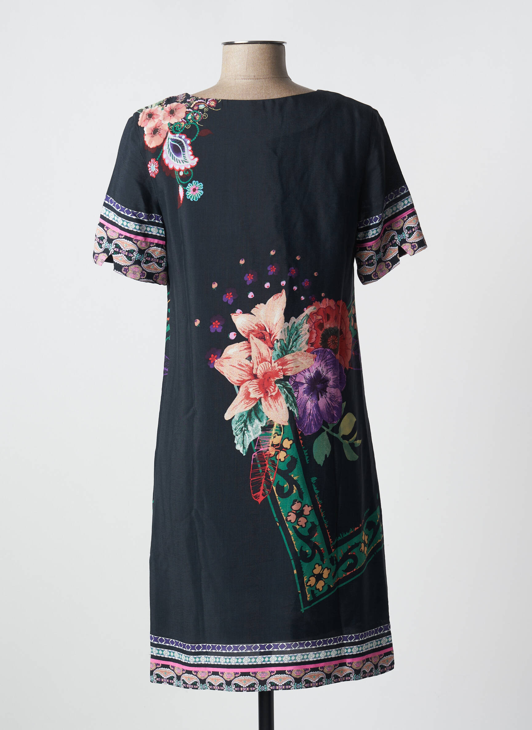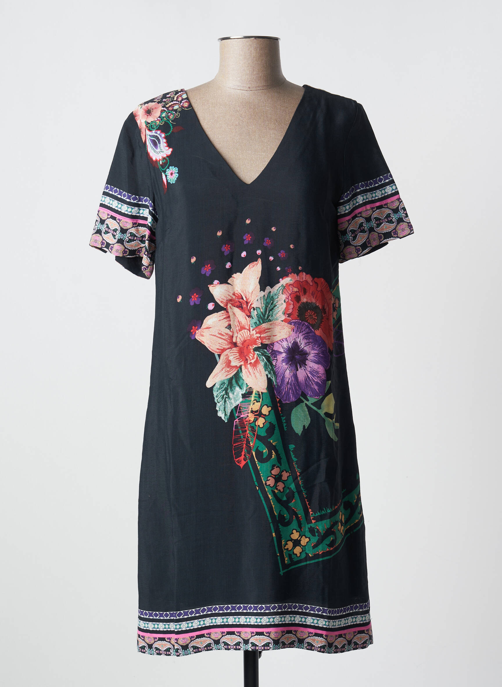 Rochie Midi Desigual Negru Mâneci Scurte