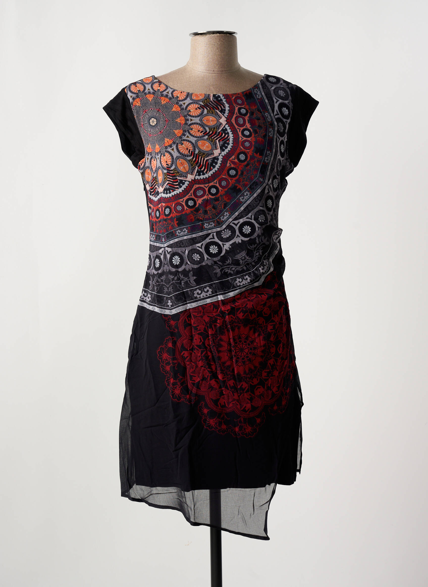 Rochie Midi Desigual Negru Mâneci Scurte