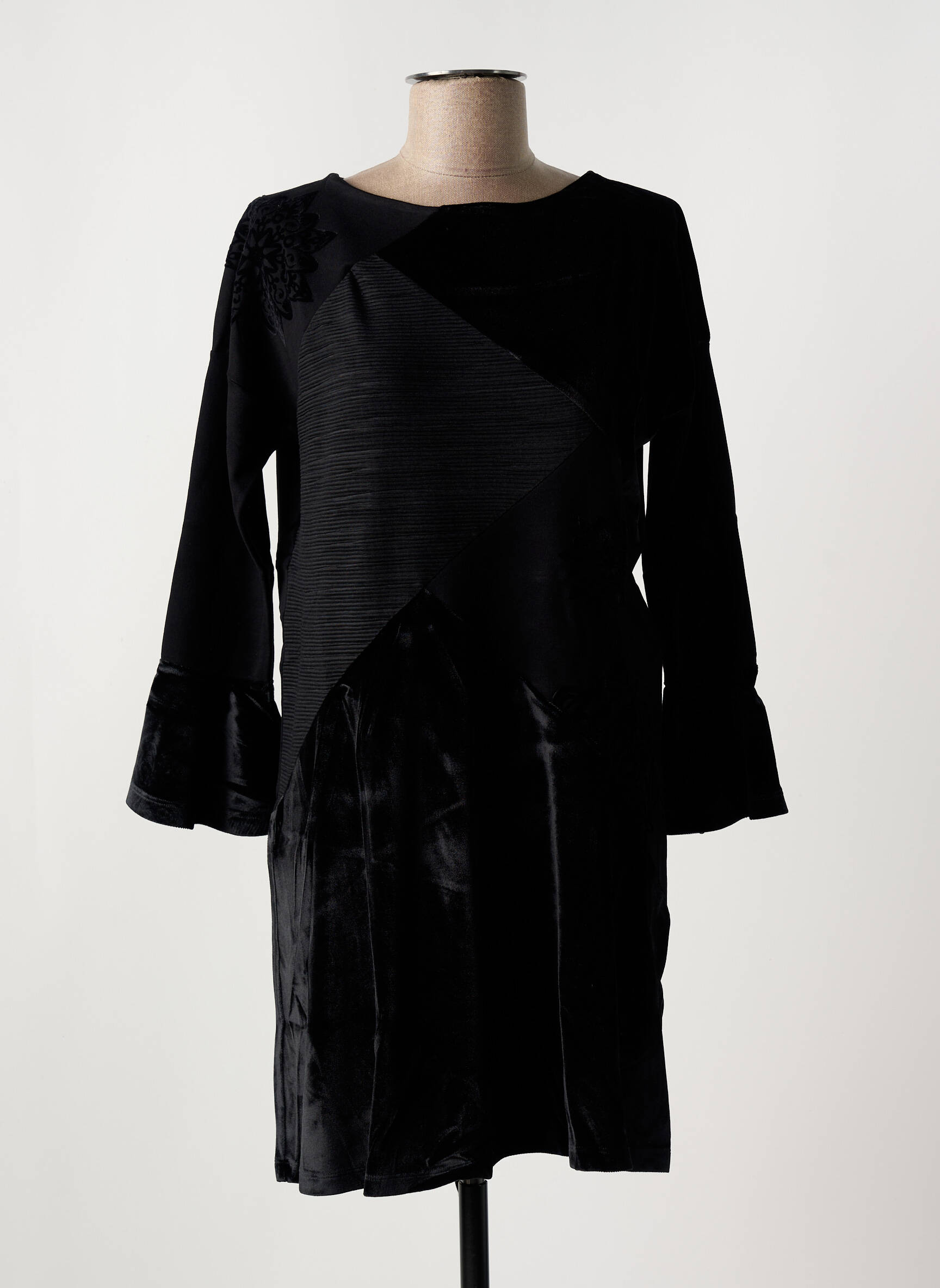 Rochie Midi Desigual Negru Mâneci Lungi