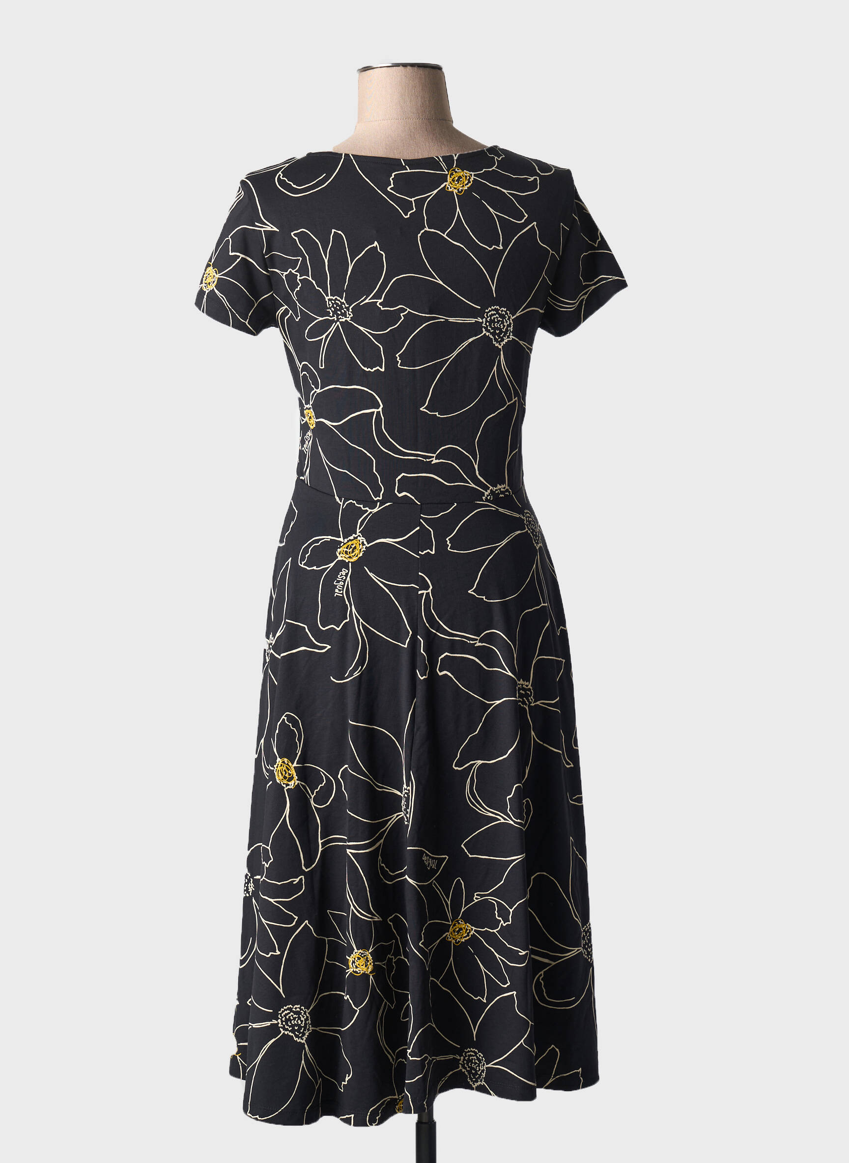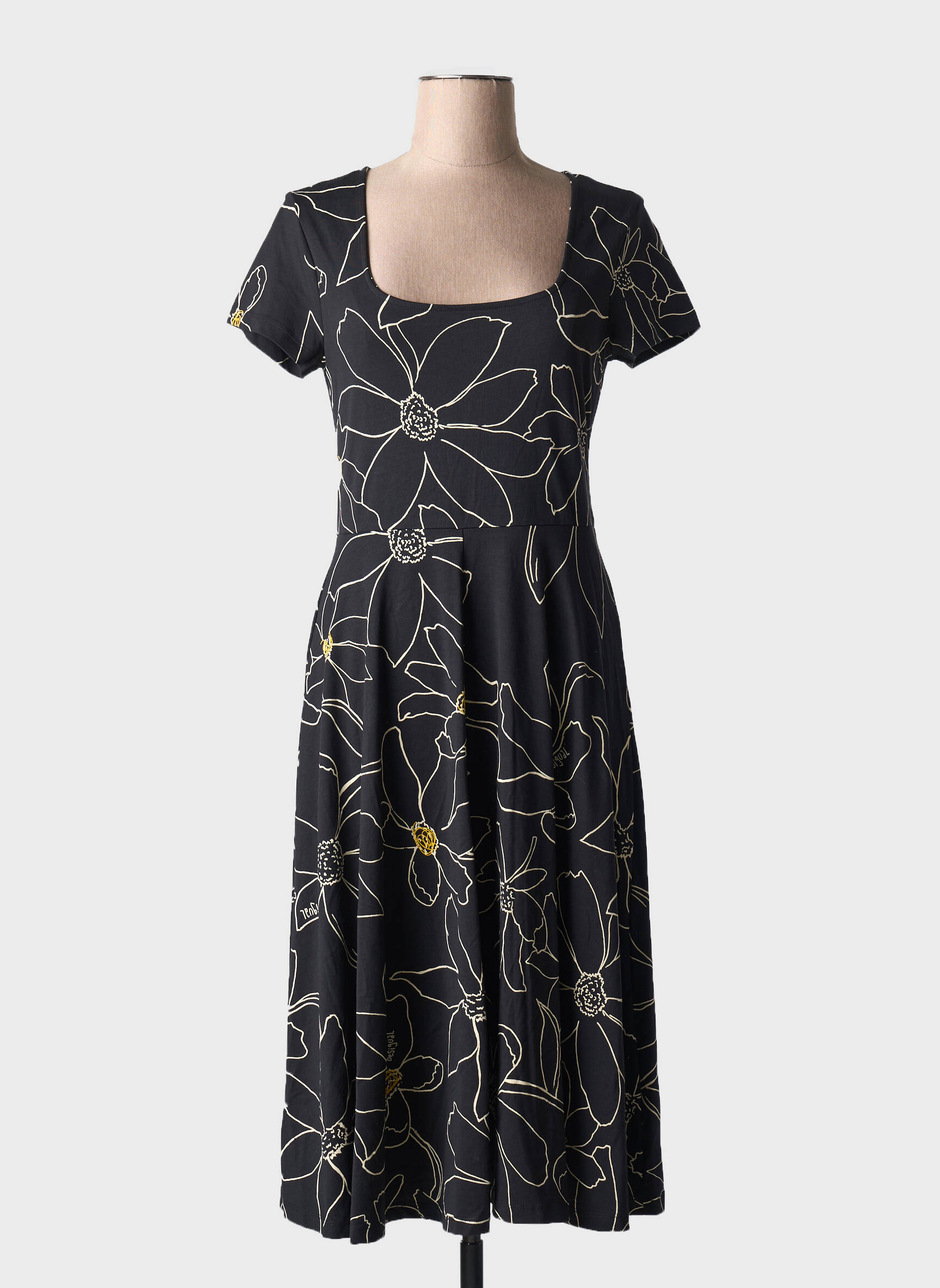 Rochie Midi Desigual Negru Mâneci Scurte